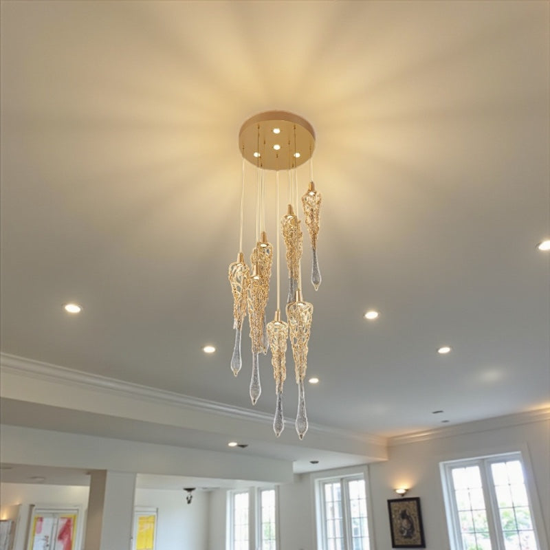 Nine Pendants Long Chandelier for Staircase Modern Branch Chandelier