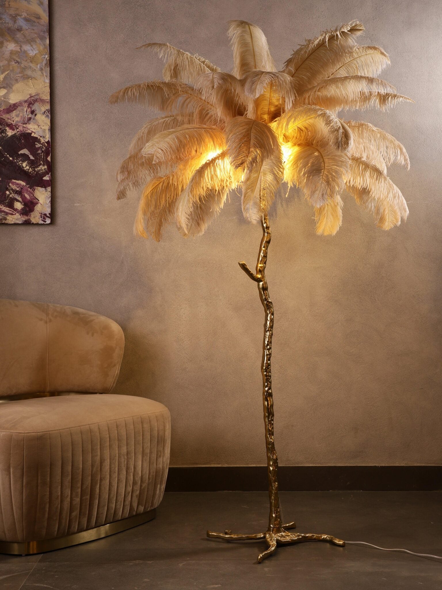 Ostrich Feather Beige Floor Lamp