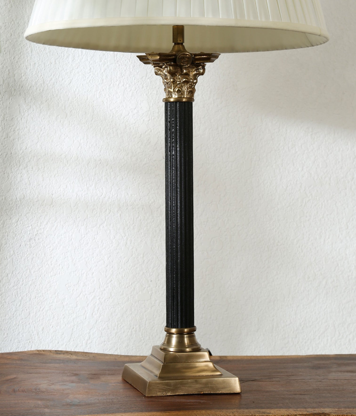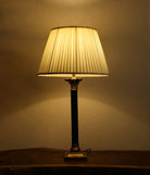 A timeless glow for modern spaces — this antique brass table lamp, with its high-gloss natural finish and soft white pleated shade, blends heritage craftsmanship with contemporary design, casting warmth and charm in every corner it touches.