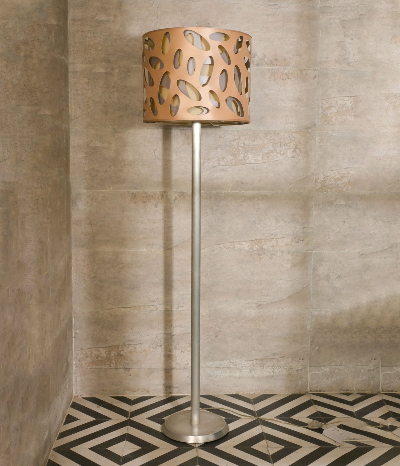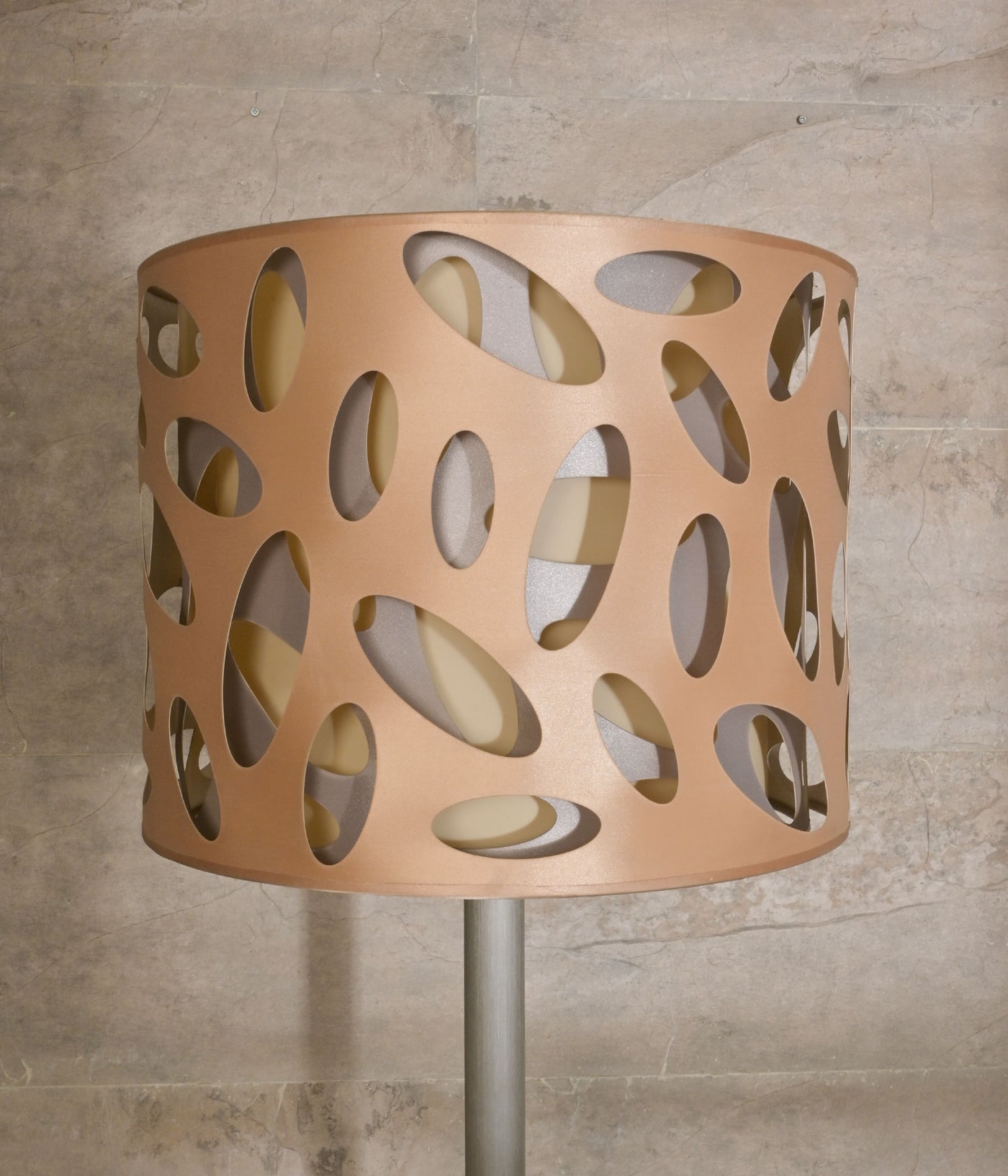 Discover our exquisite floor lamp with a unique three-layered shade and captivating laser