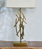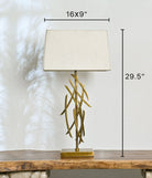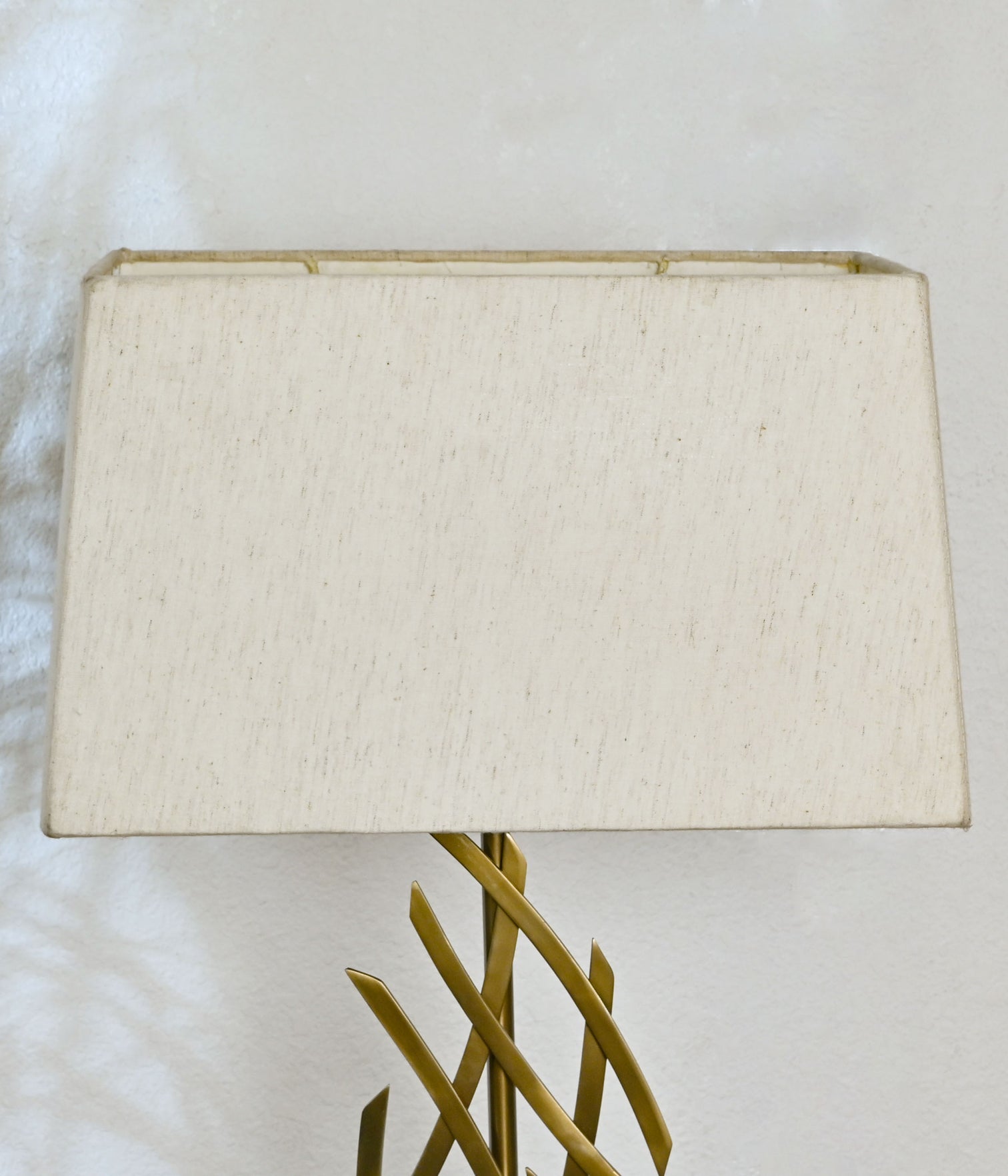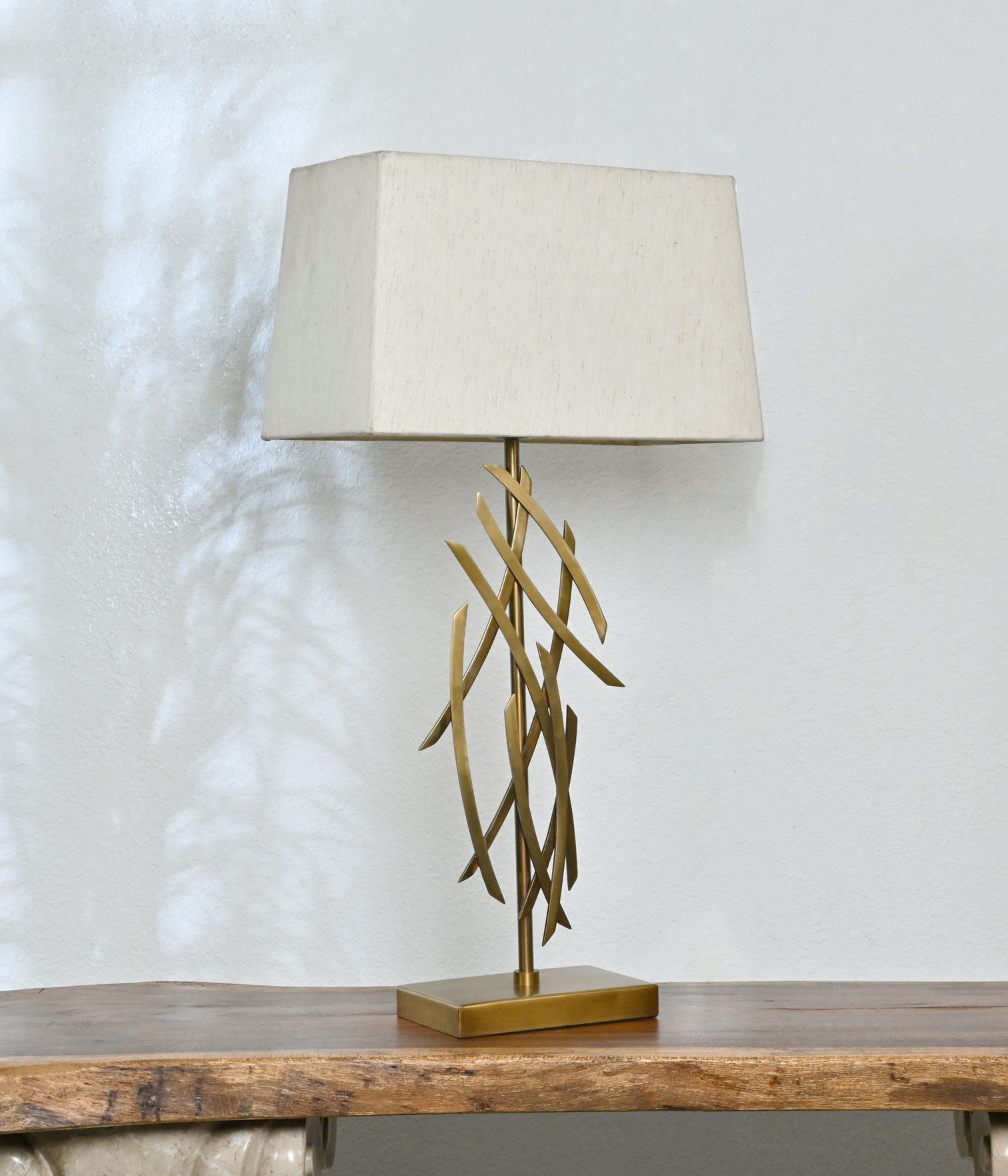 Make a statement with this unique and stylish lamp, featuring a modern zig-zag design in a rich antique brass finish. The off-white shade adds a touch of softness and elegance, while the overall design creates a beautiful contrast of texture and tone.
