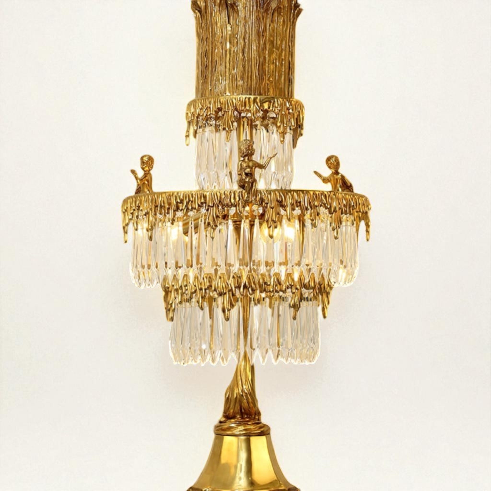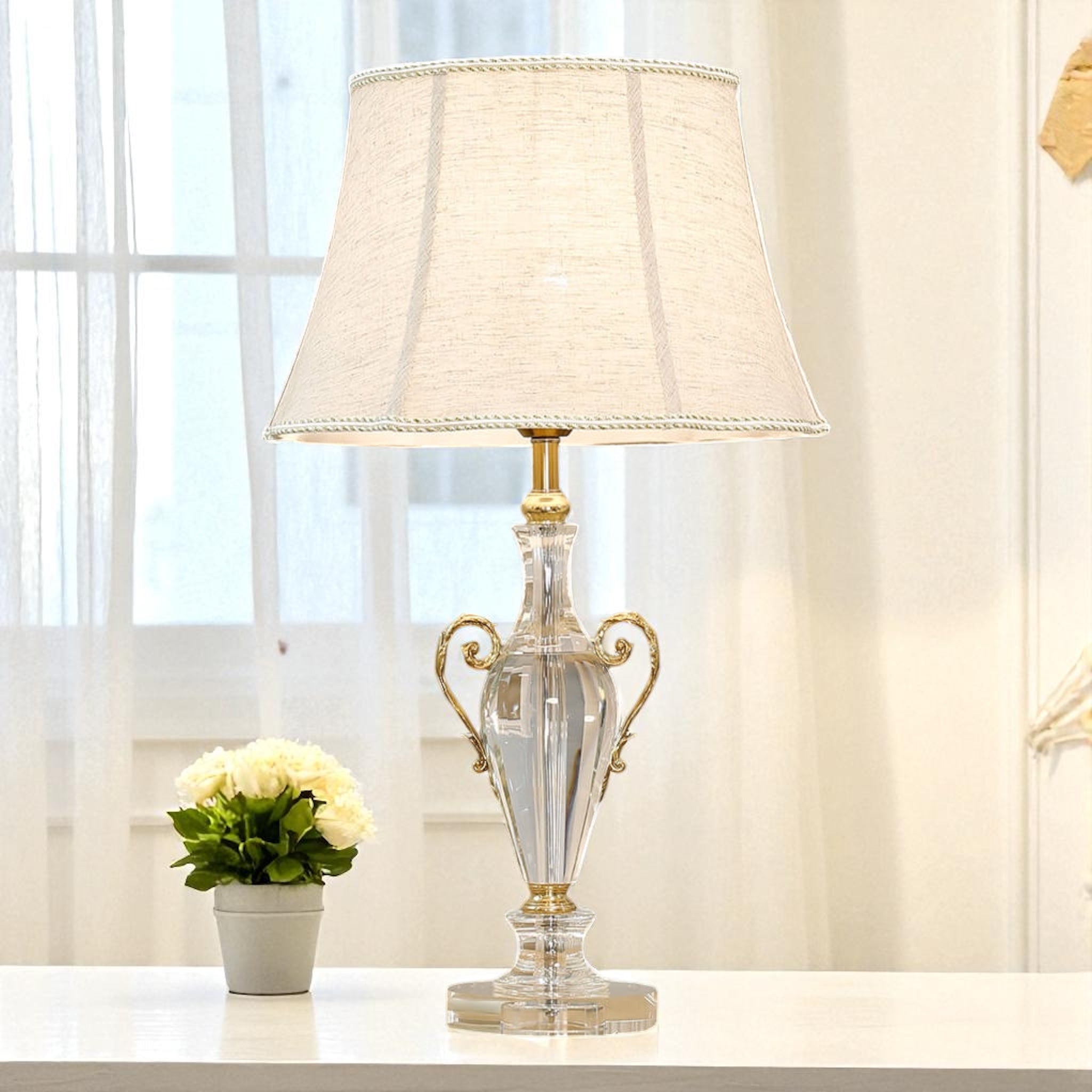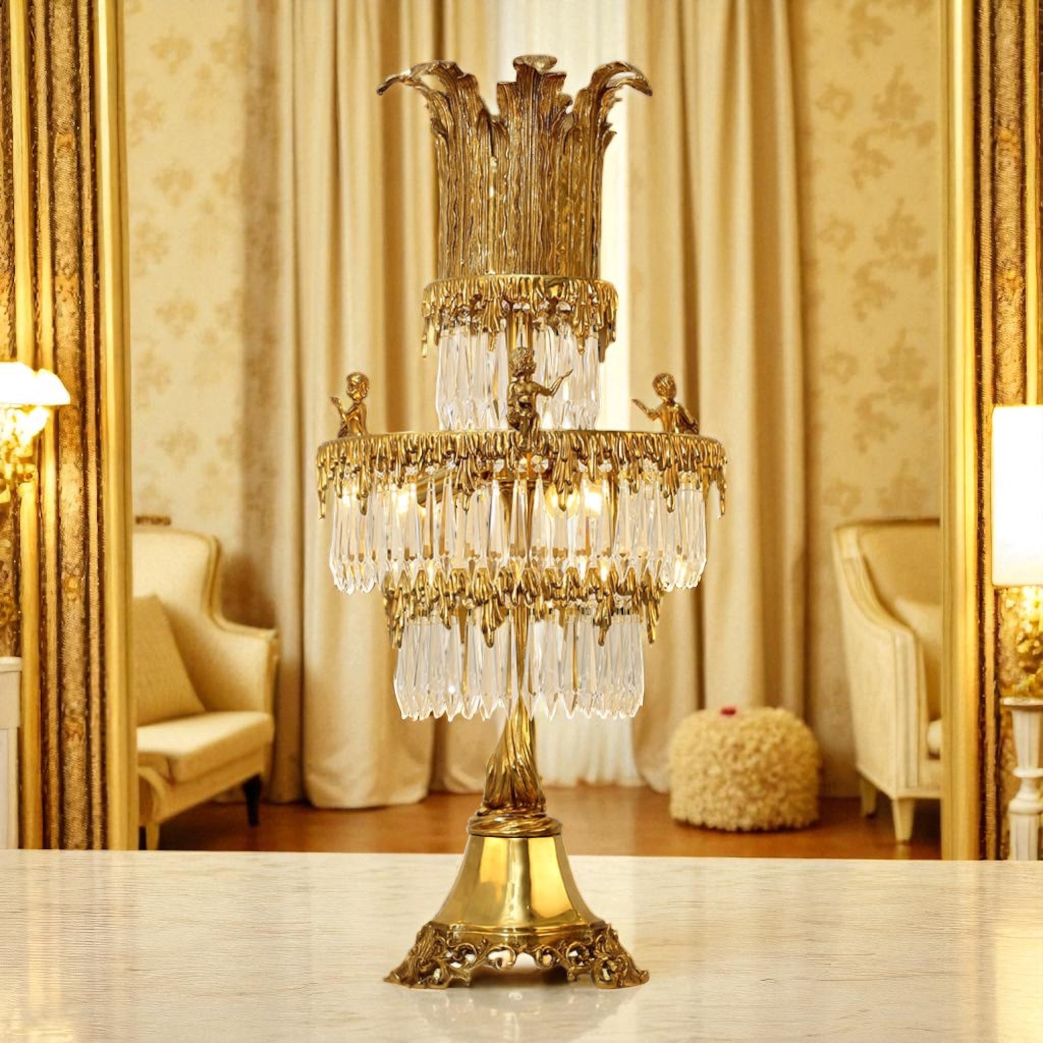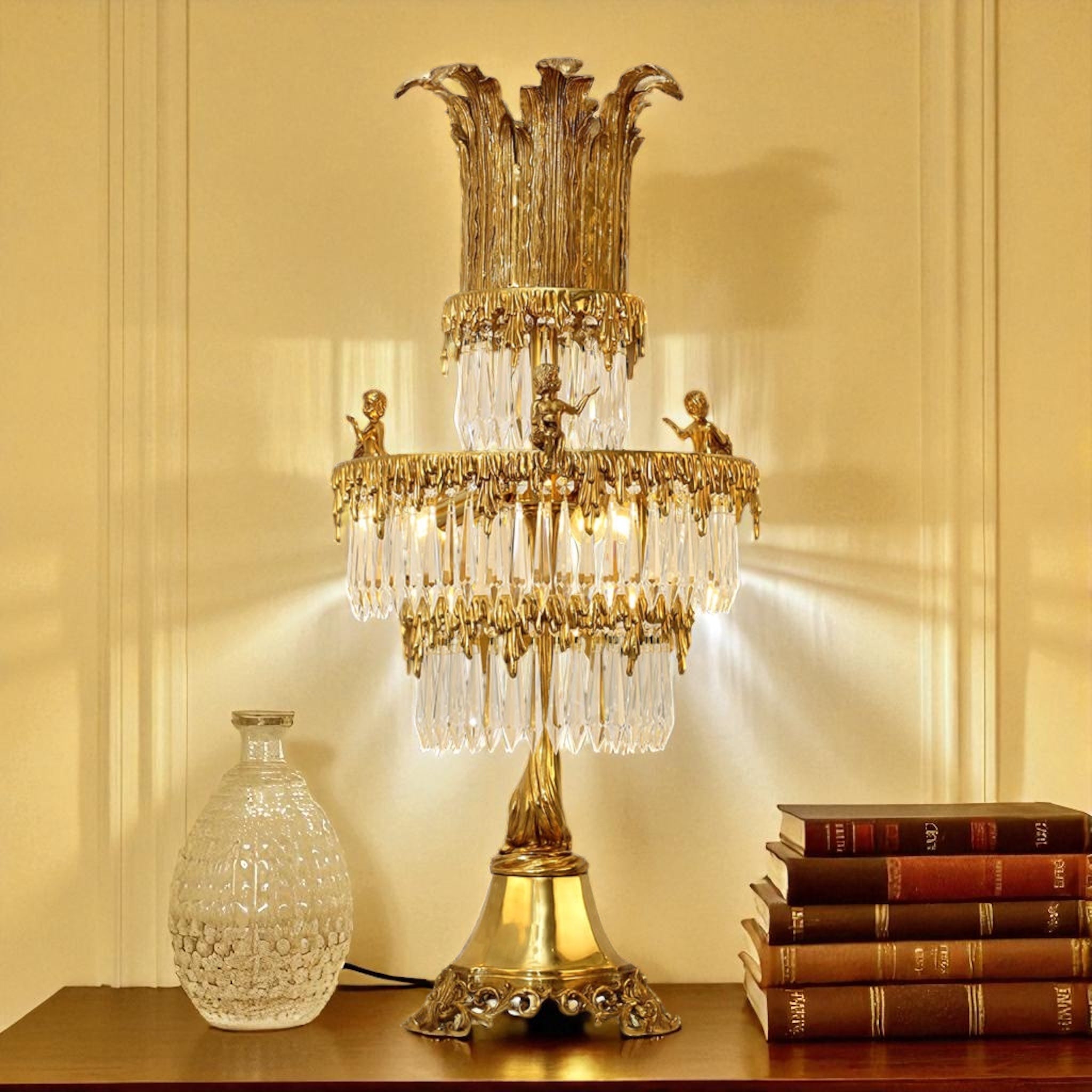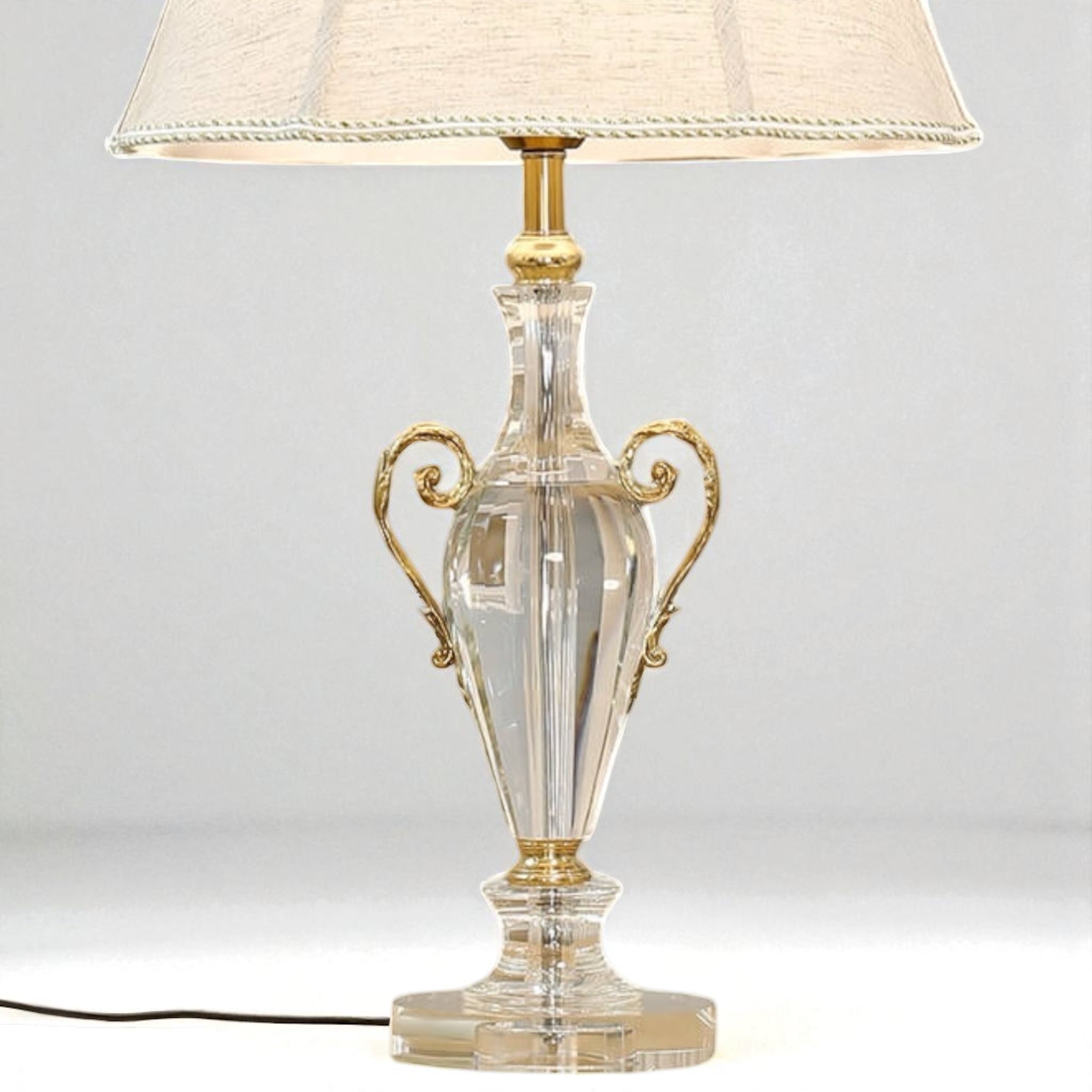 European-Style Brass and Crystal Table Lamp