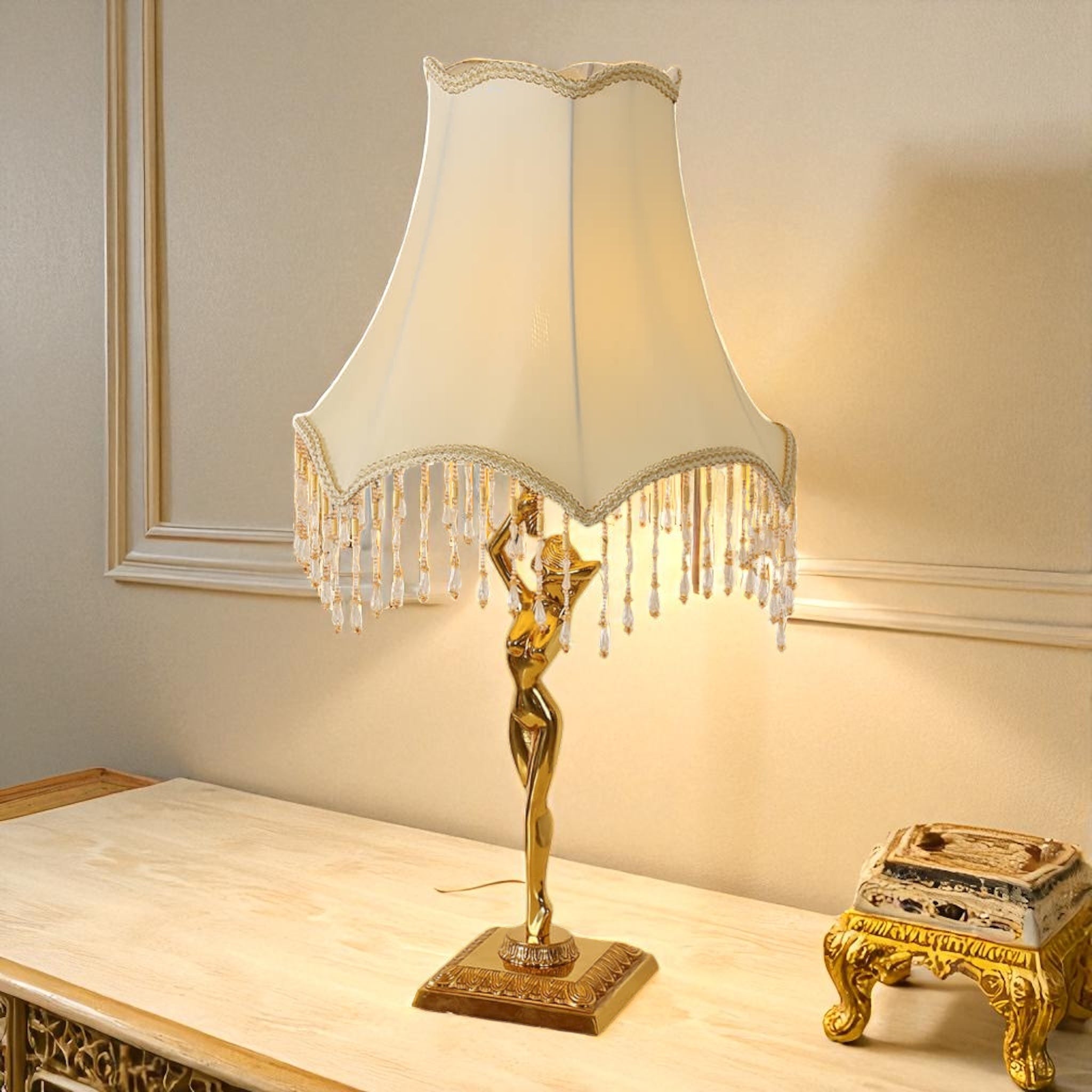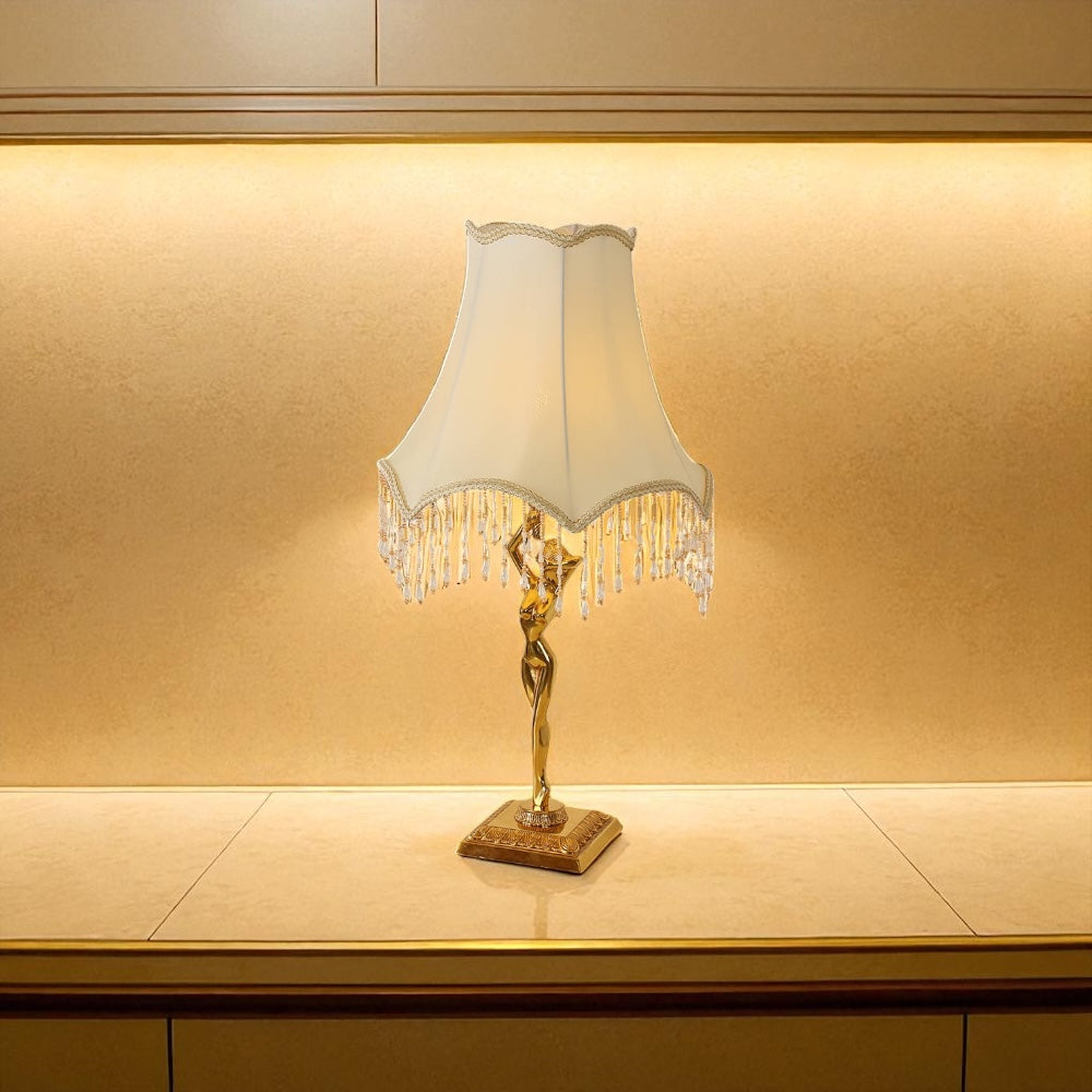 French Brass Crystal Tassel Luxury 1-Light Table Lamp