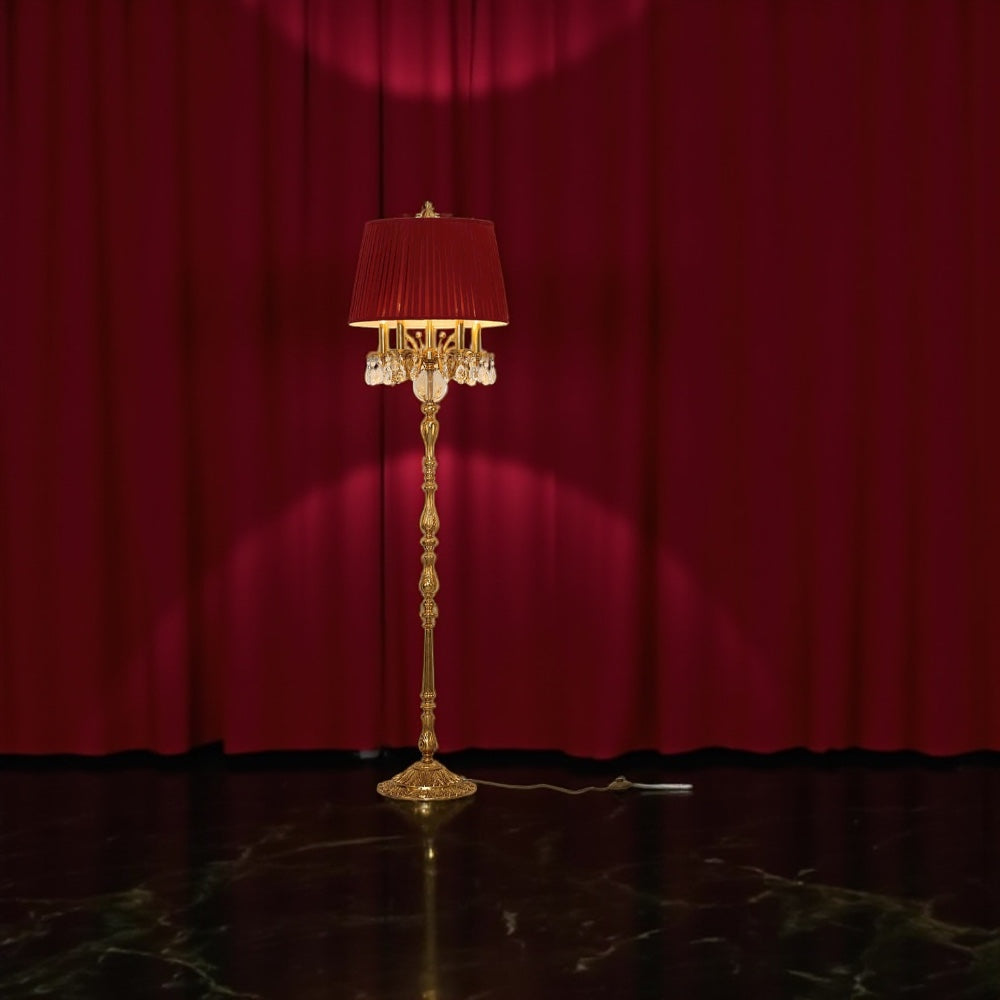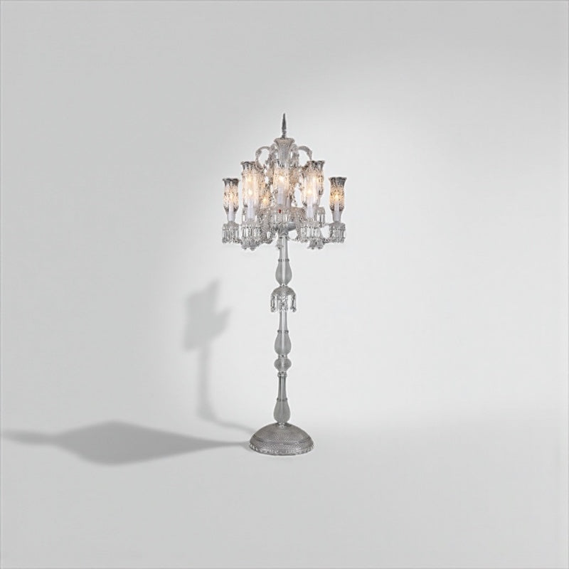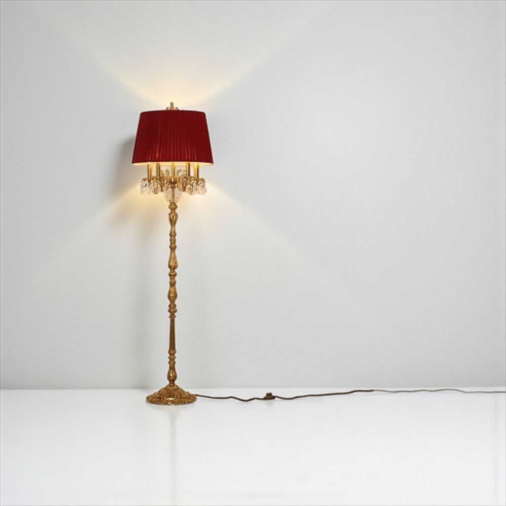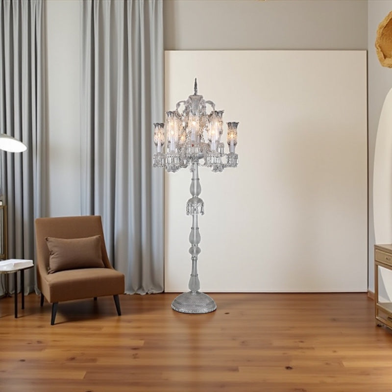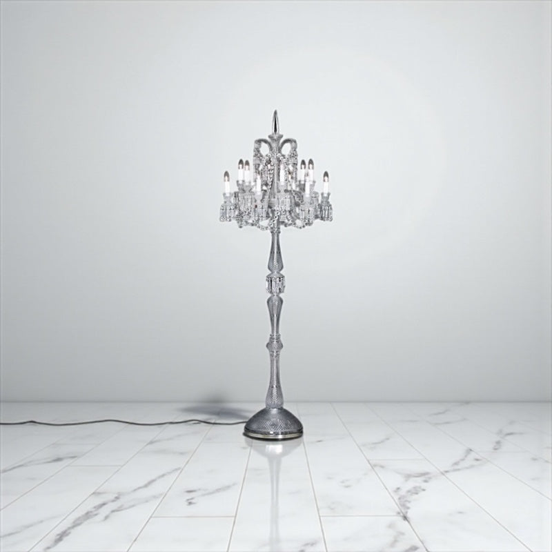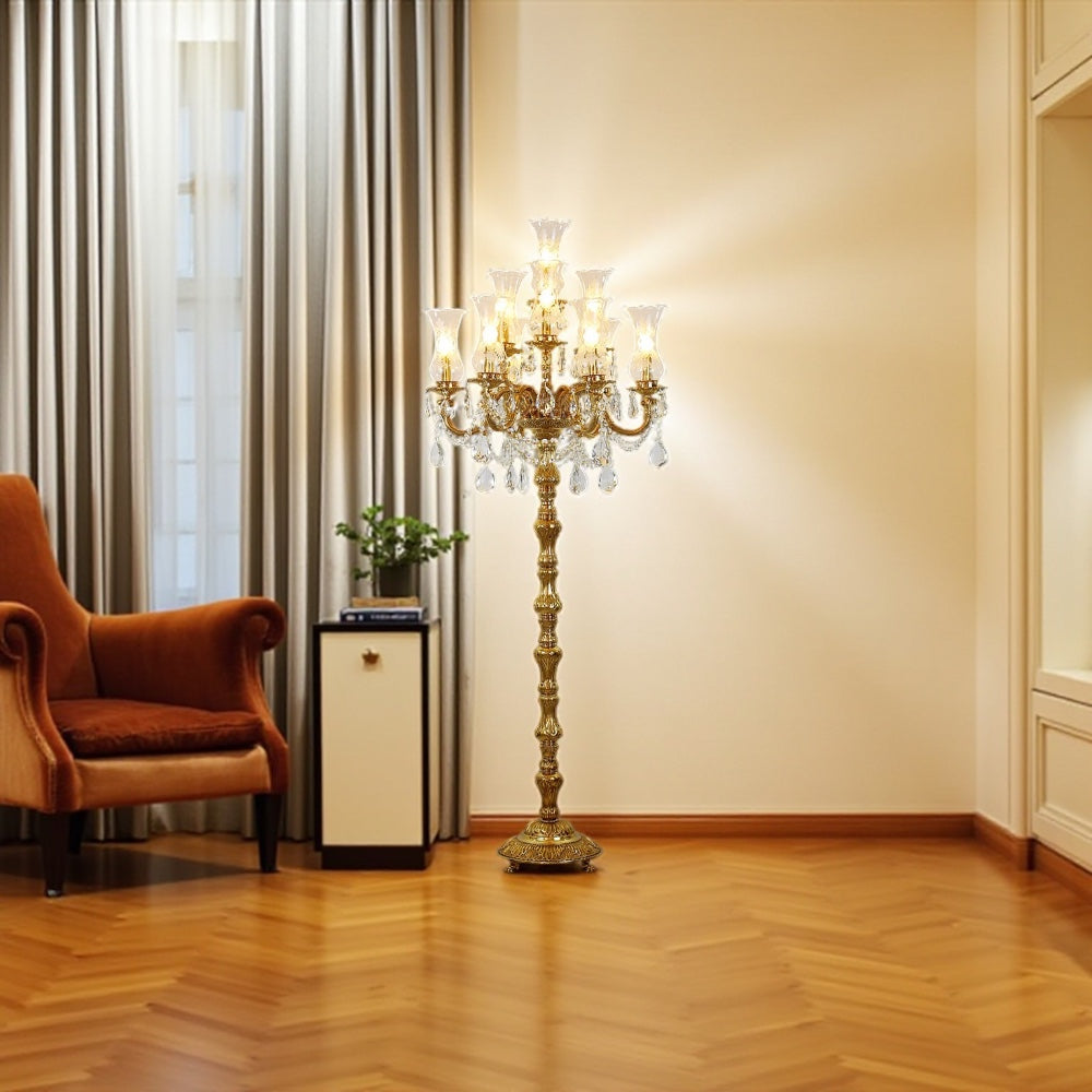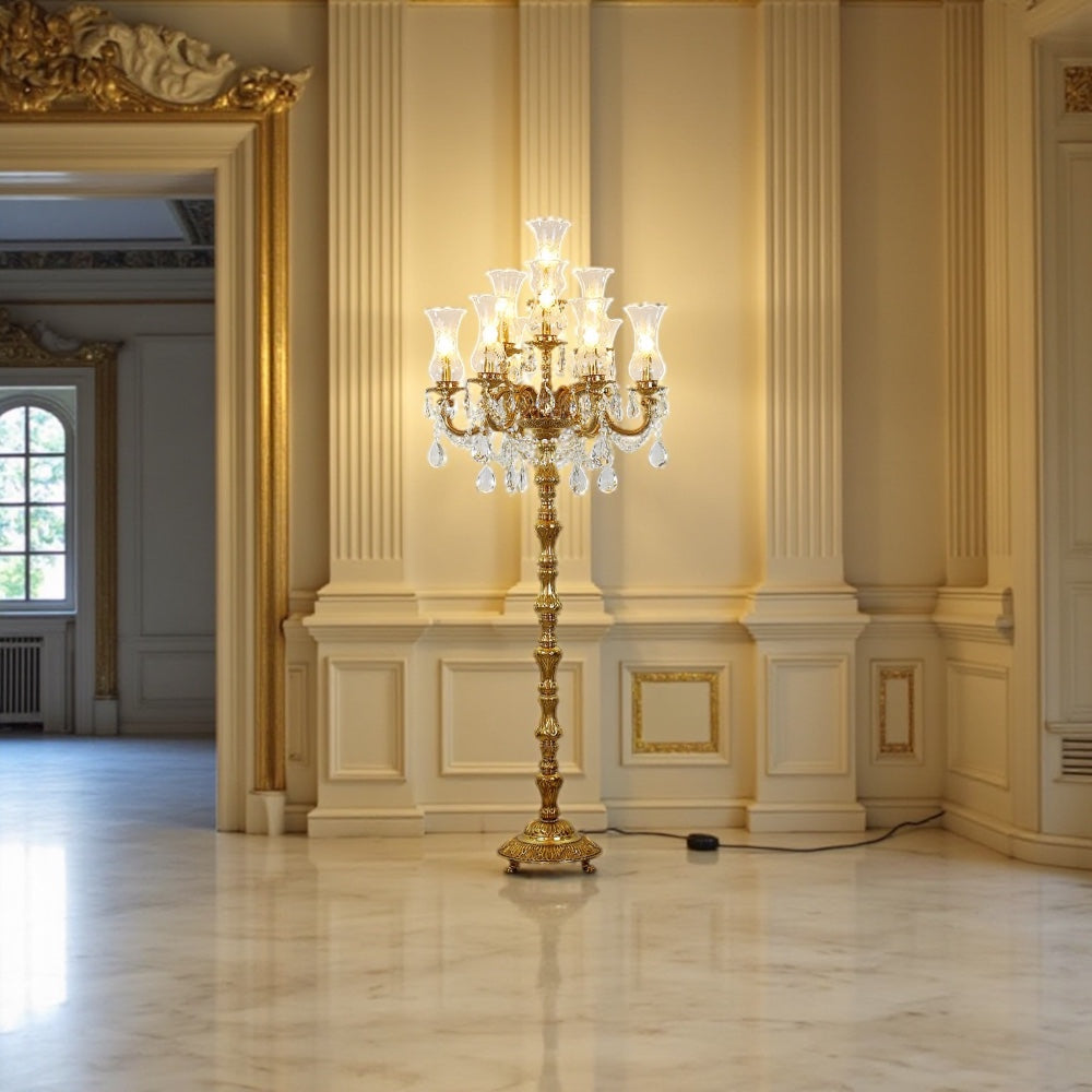 French Style Brass and Crystal Floor Lamp Candelabrum