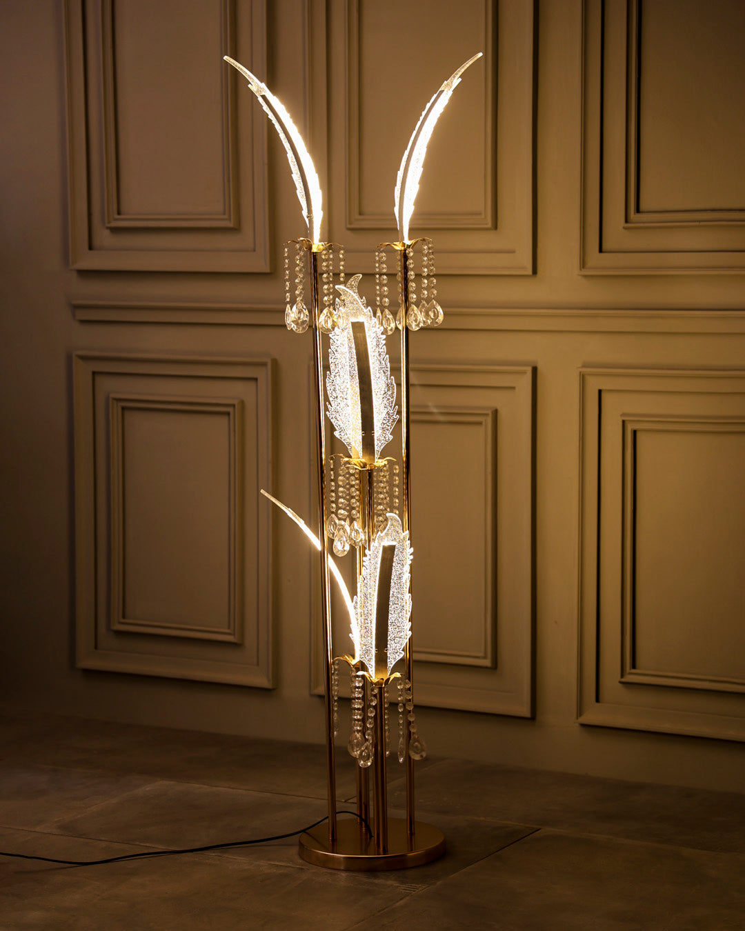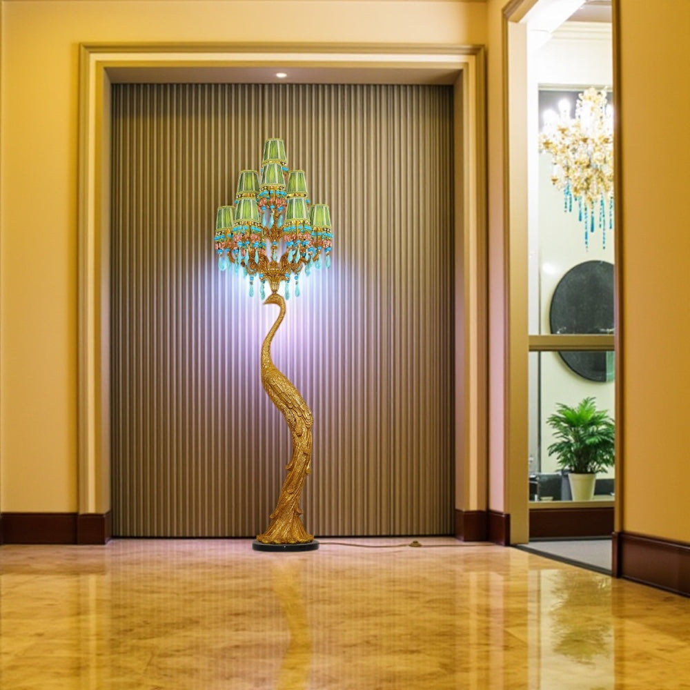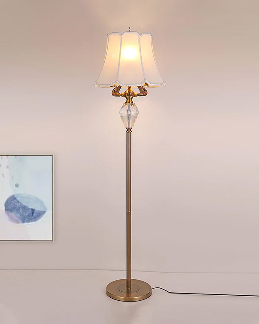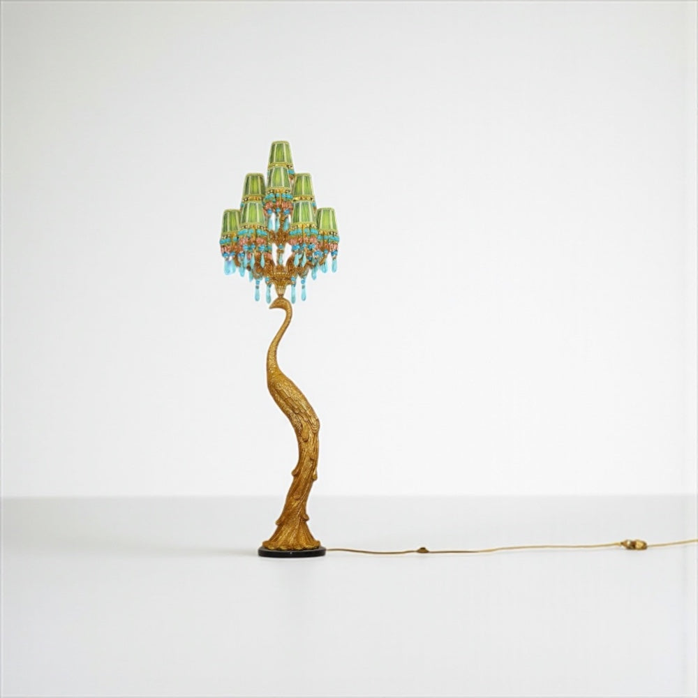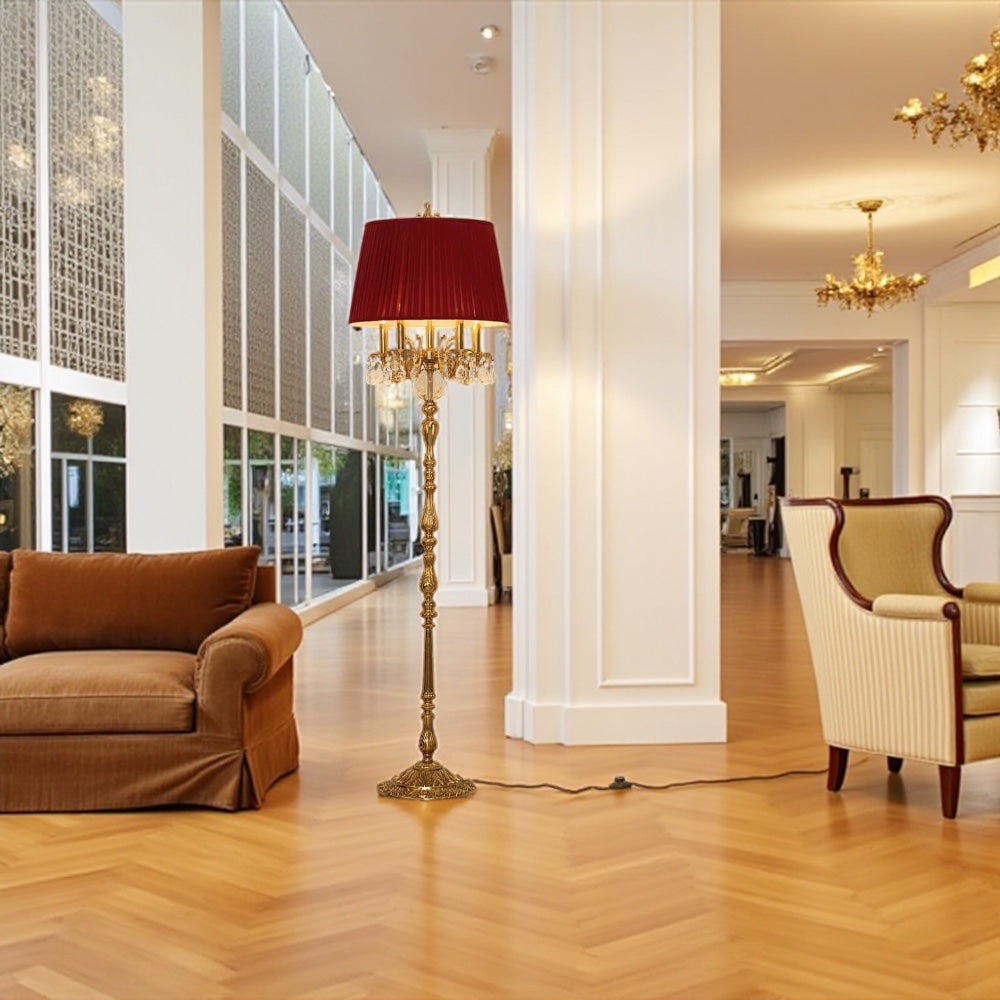 French Style Brass and Crystal Floor Lamp Candelabrum