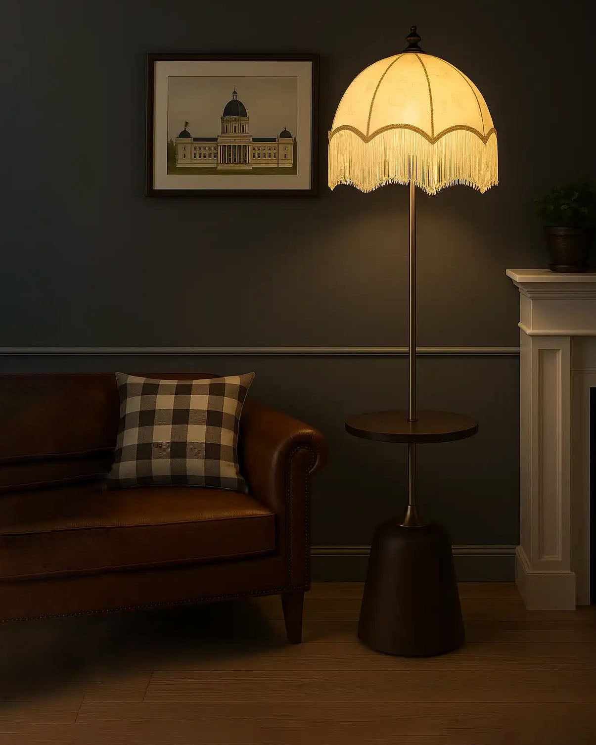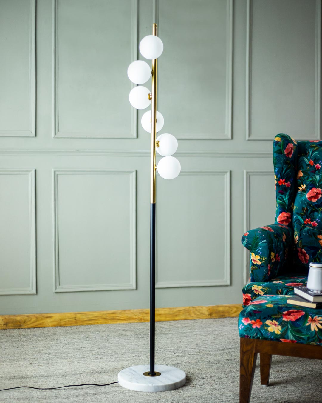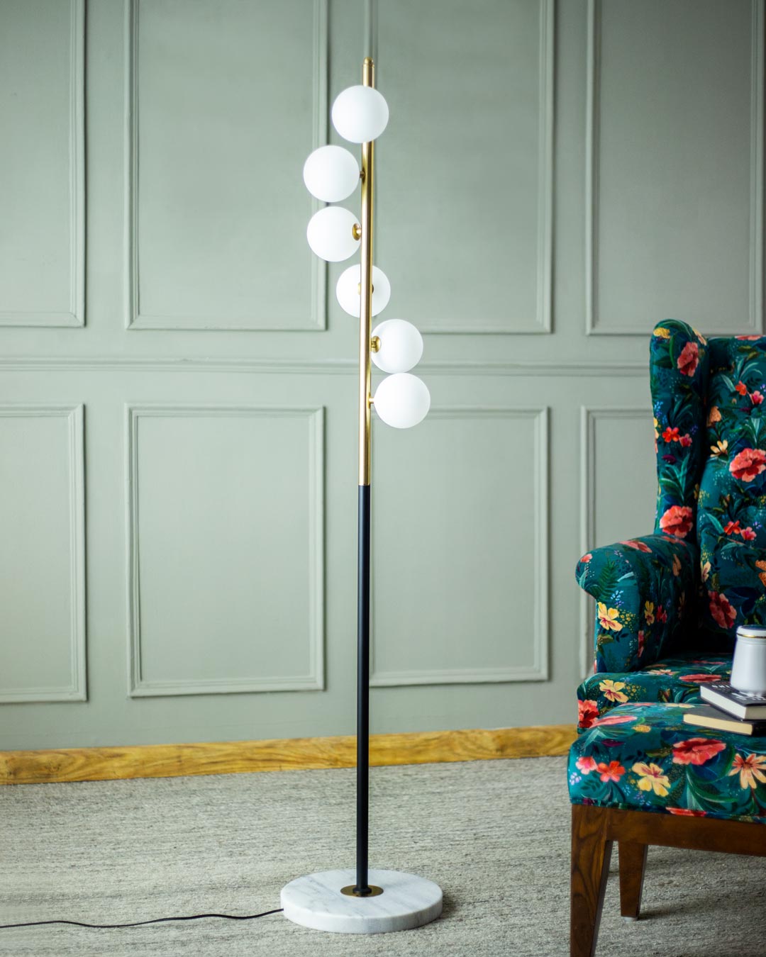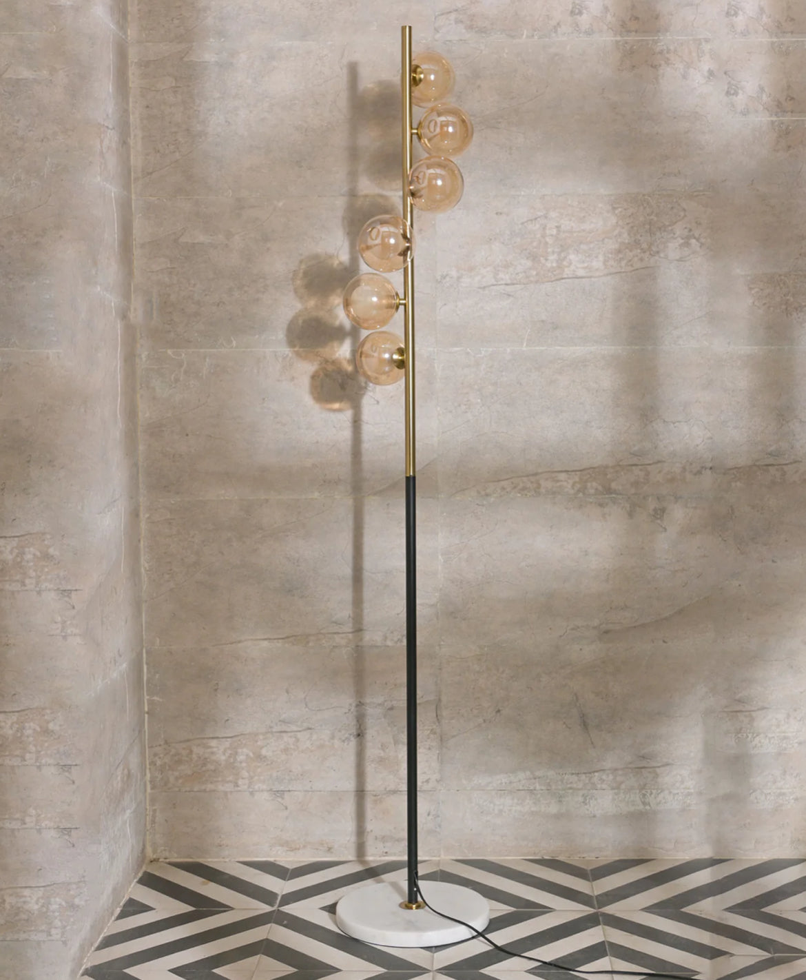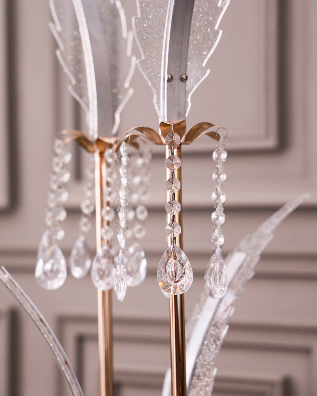 French Style Brass and Crystal Floor Lamp Candelabrum