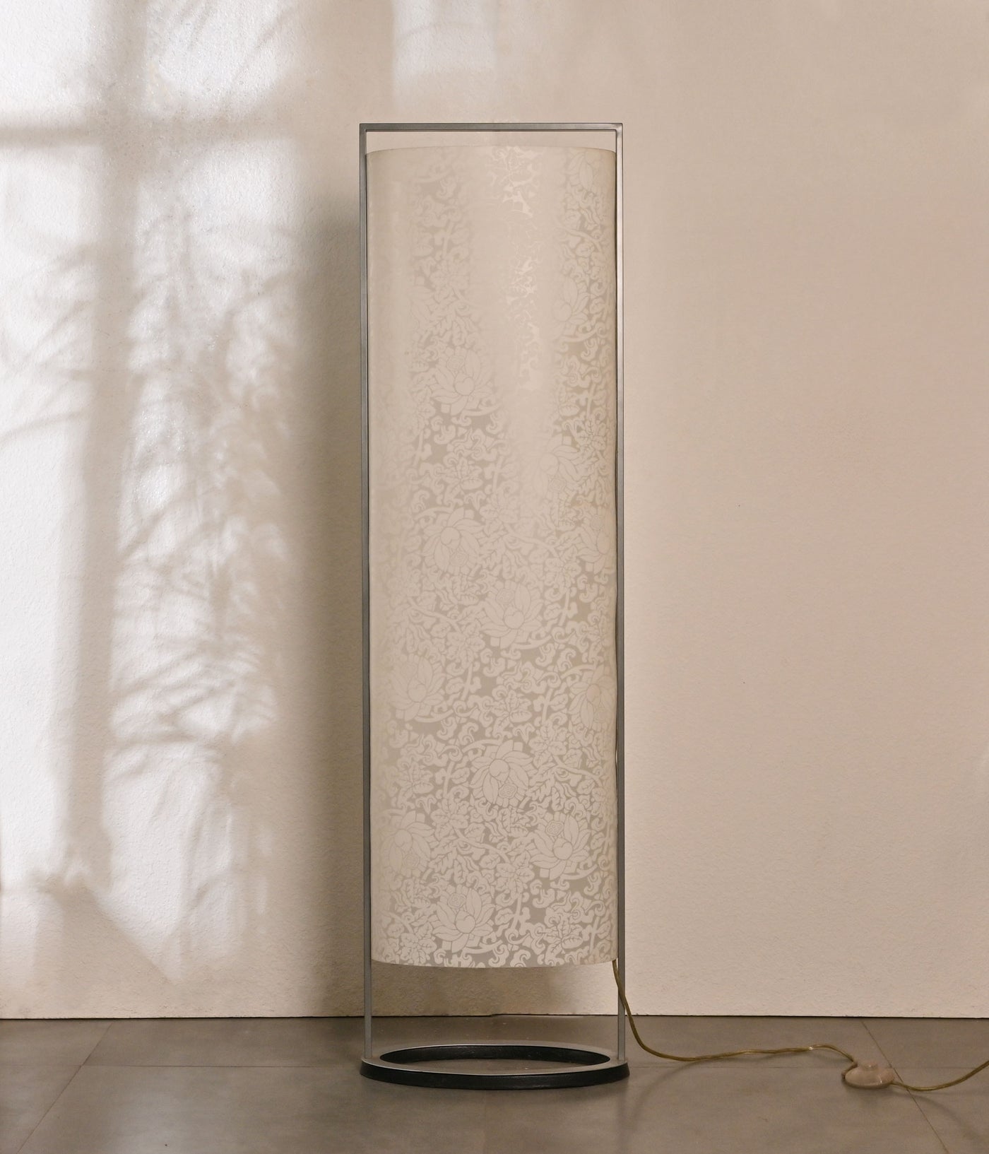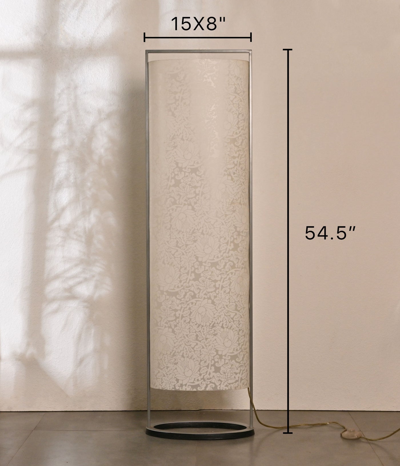 Add a pop of personality to your space with this one-of-a-kind Floor Lamp, featuring a beautiful white floral acrylic sheet shade and strong, matt silver metal frame. A statement piece that's sure to turn heads!