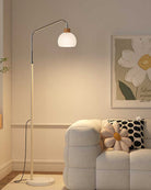The Luna Arc Floor Lamp combines modern minimalism with a soft, cozy glow. Featuring a curved metal stem, a ribbed glass shade, and a marble base, this lamp is perfect for reading nooks, living rooms, or bedrooms. Its elegant form and warm light add both style and function to any space.