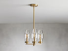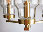 • Crafted from brass-plated steel with a lacquered finish accented with thick, hand-blown glass shades.