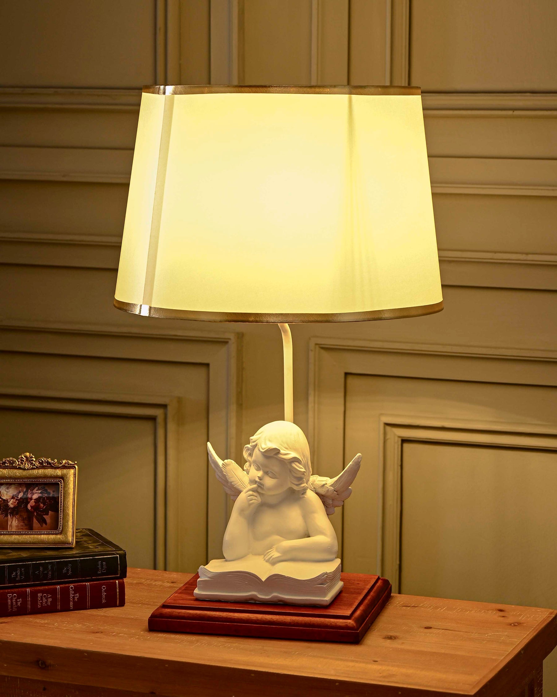 The Book Reading Angel Cherub Table Lamp features a beautifully crafted cherub design that emits a soft, warm light, creating a calming and inviting atmosphere. Perfect for bedrooms or cozy spaces, this lamp combines decorative charm with functional illumination to enhance your home’s ambiance.