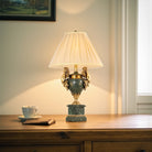 The lamp has a classical or antique French style, with a decorative urn-shaped body and a square marble base.
