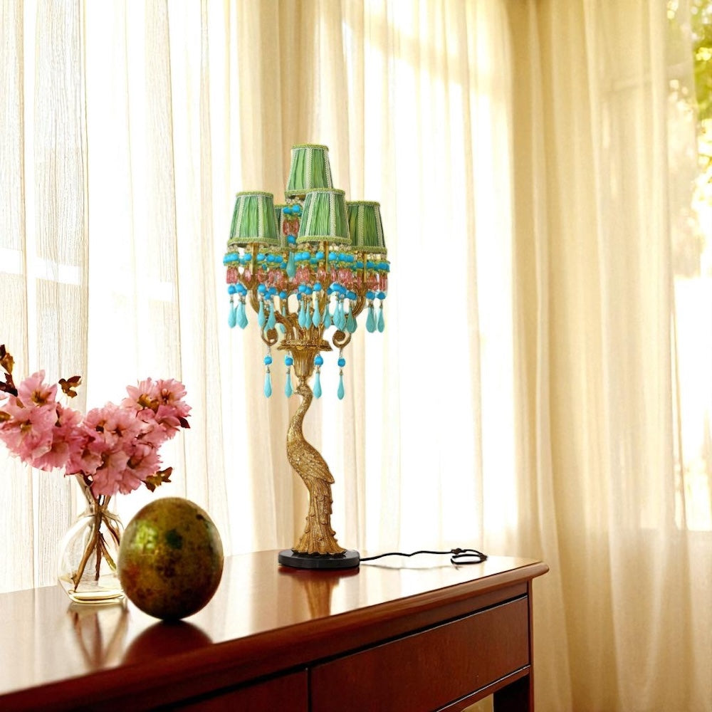 French Peacock Villa Crystal Gold Table Lamp