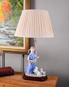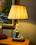 This Victorian Innocent Girl Table Lamp features exquisite fine porcelain craftsmanship with meticulous attention to period details. The delicate figurine base portrays the quintessential Victorian aesthetic, while providing sophisticated illumination for any interior space. The lamp's balanced proportions and authentic design elements make it an exemplary choice for collectors and interior designers seeking historically informed lighting with refined artistic merit.