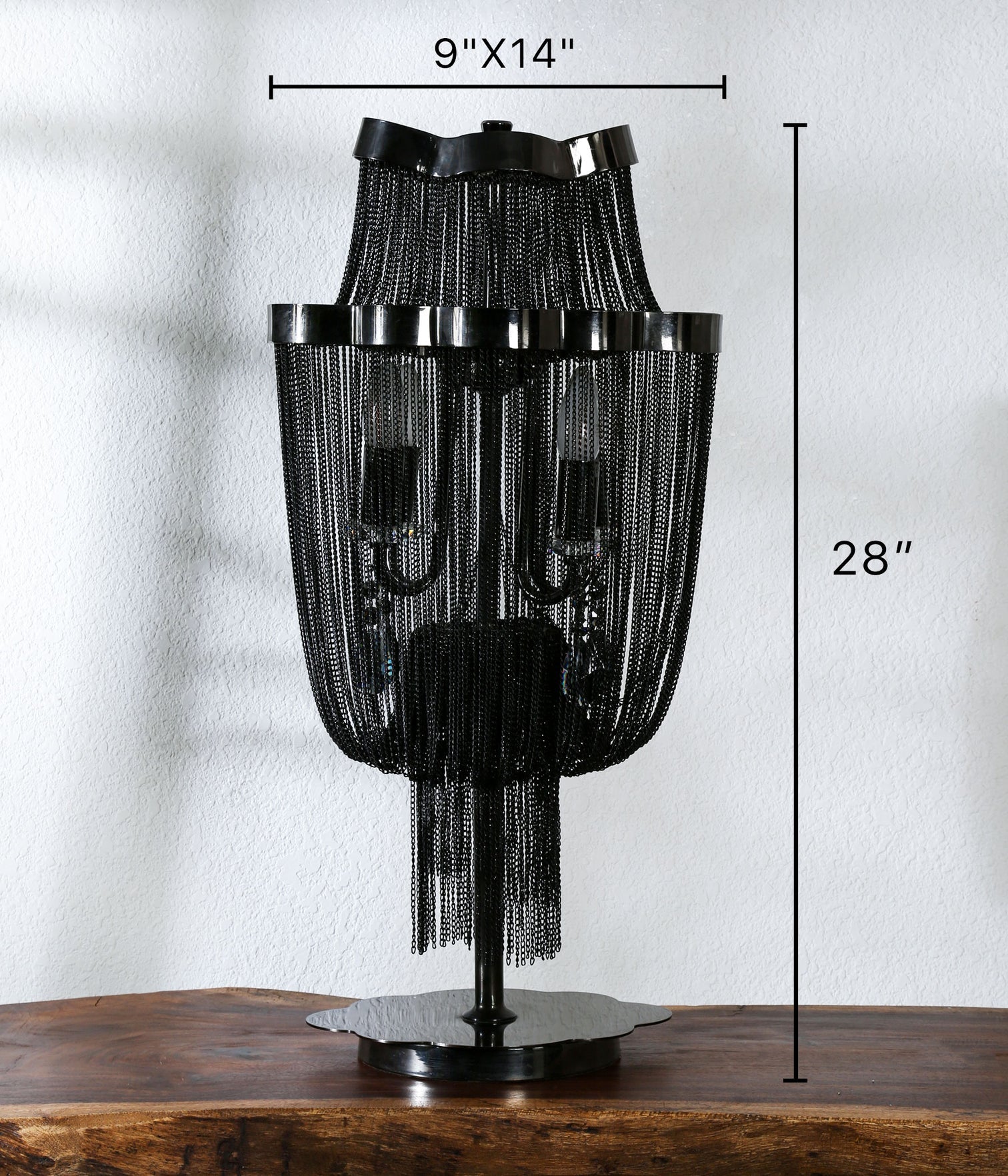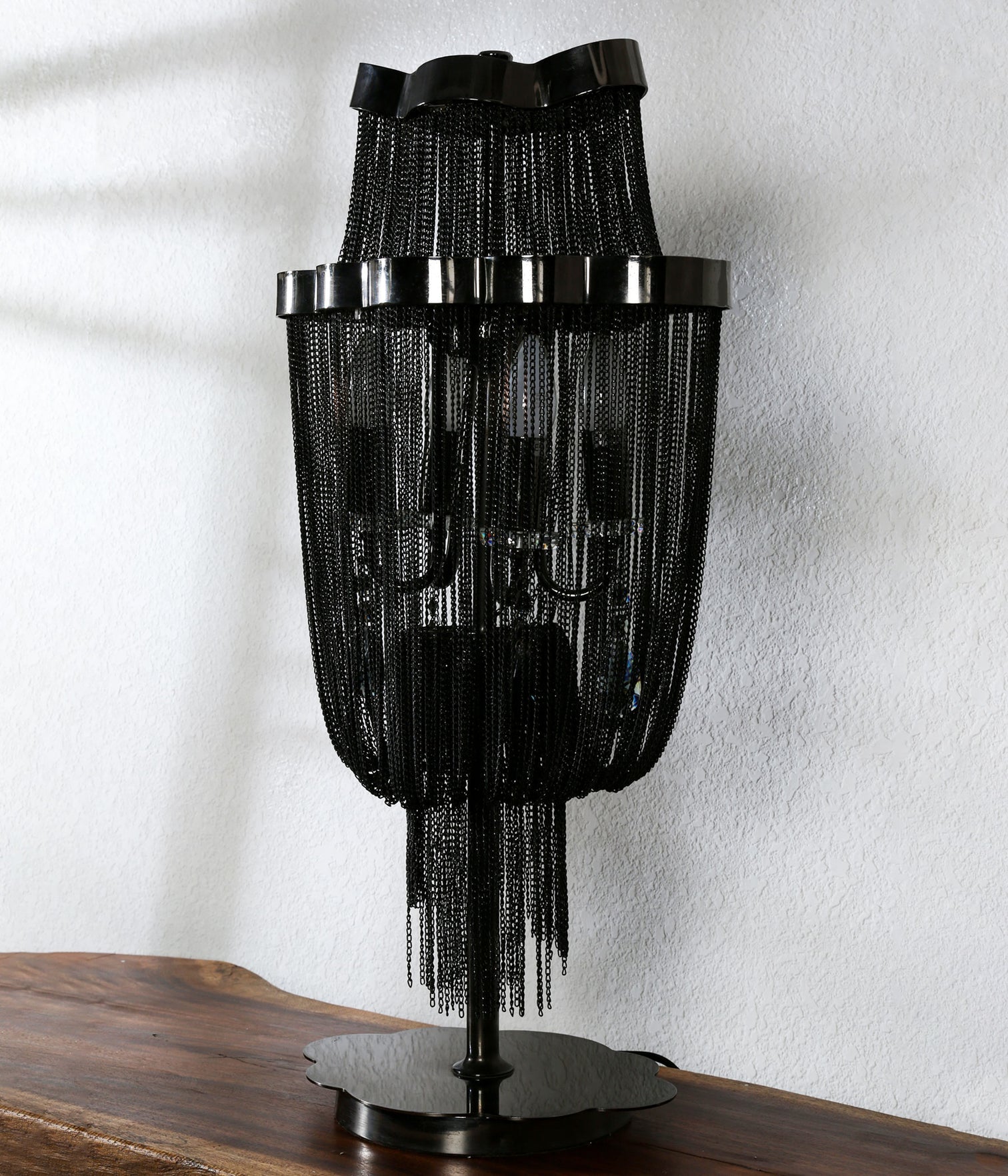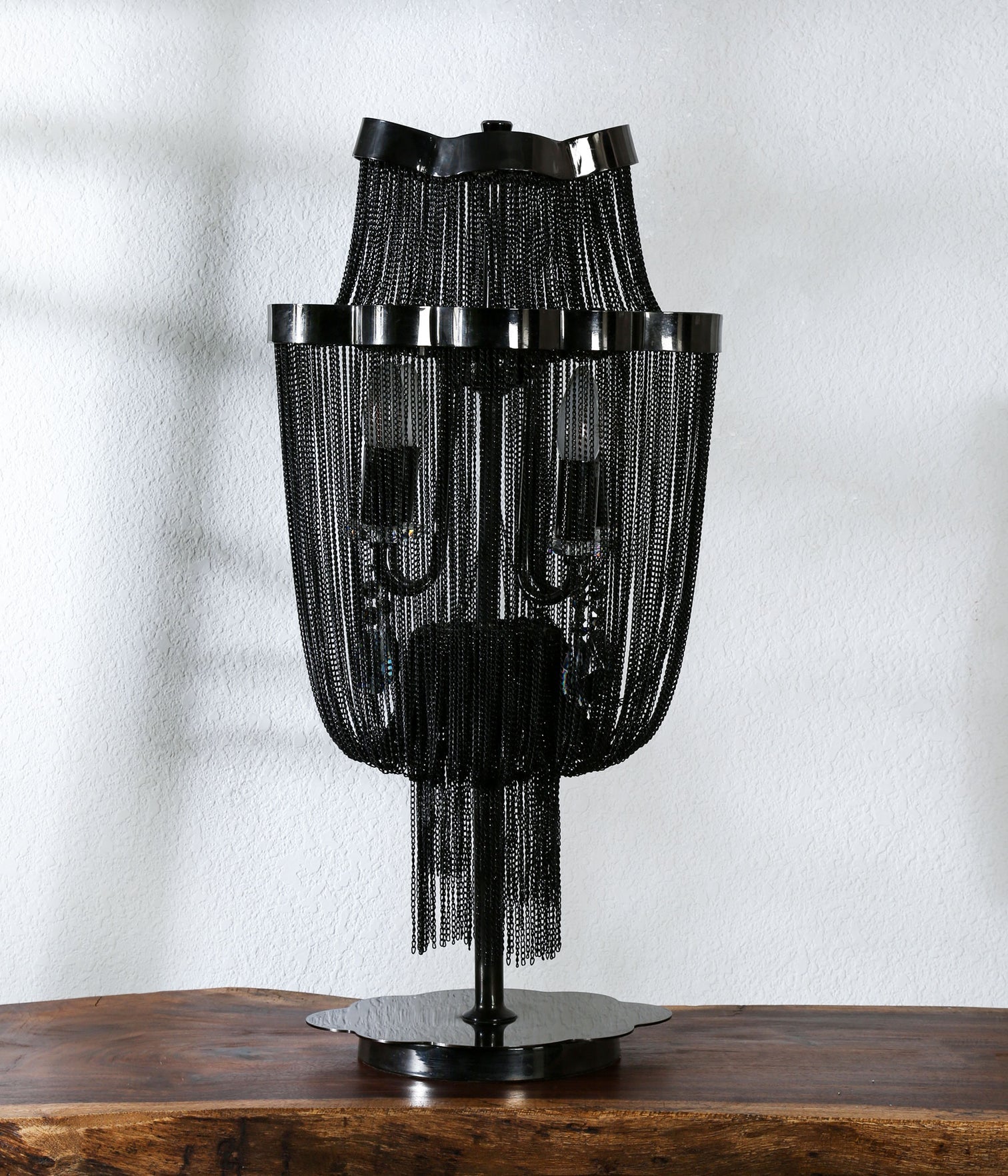 Crafted in striking black metal with a meticulously detailed chain design, this table lamp brings an edgy twist to contemporary spaces. A piece that doesn’t just light up a room, it commands attention and elevates your décor game instantly.