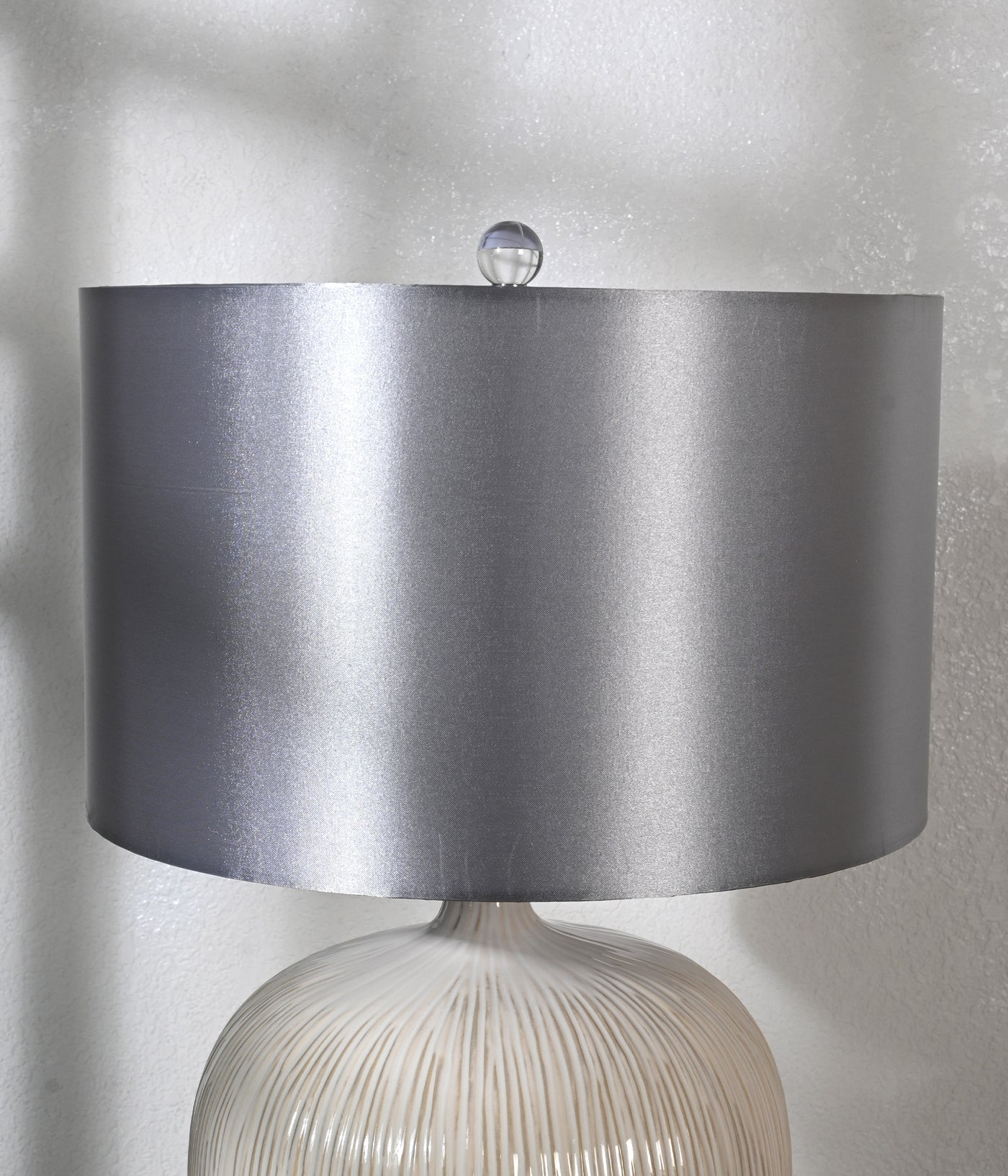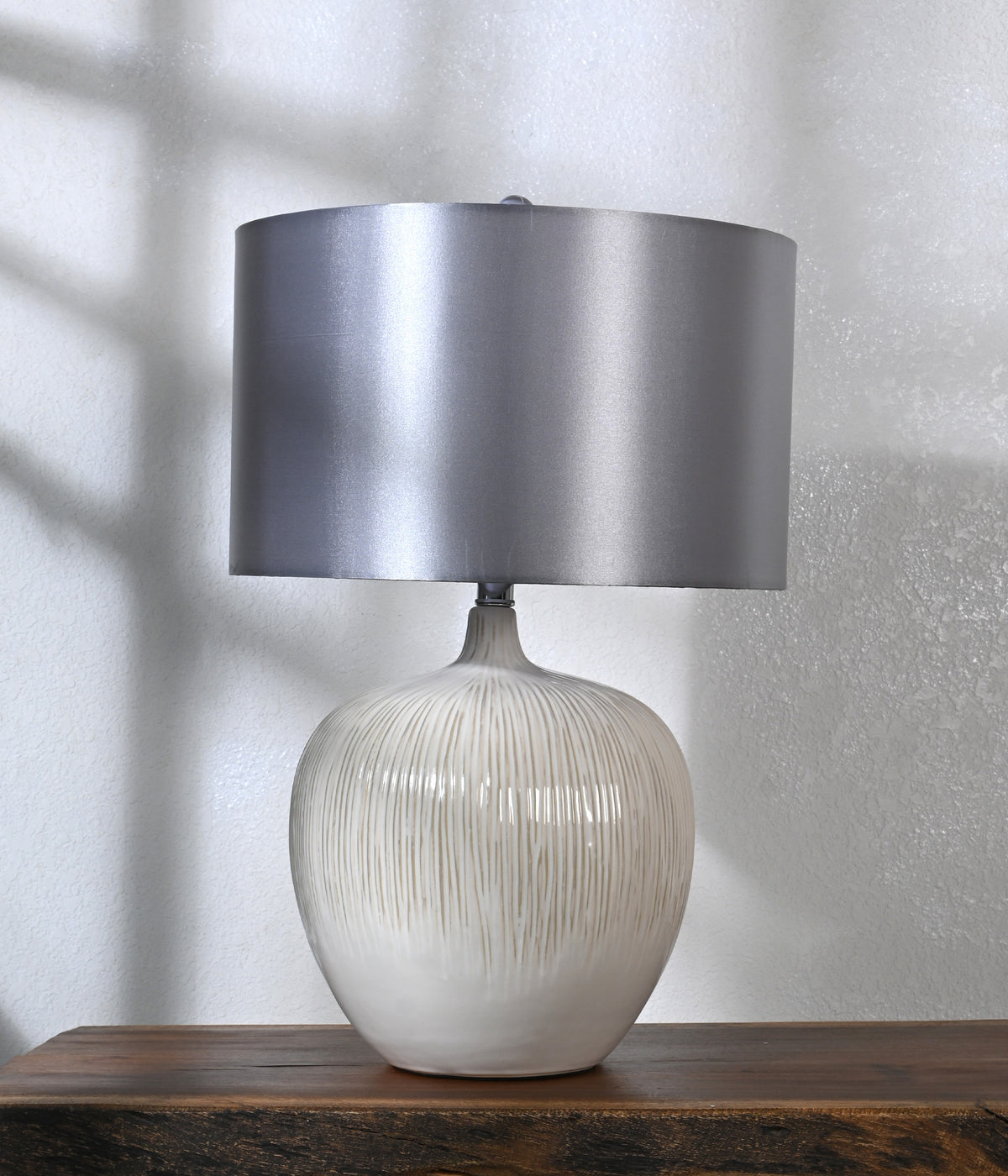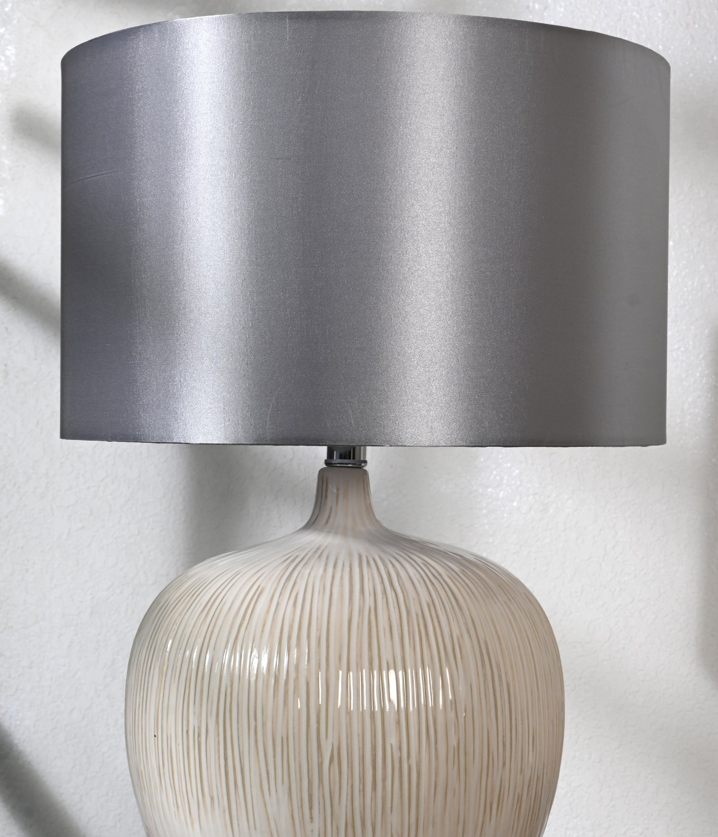 A soft cream ceramic silhouette, crowned with a silver-toned shade, this lamp is more than just lighting, it’s a statement of calm luxury, elevated taste, and quiet refinement. Perfect for spaces that deserve a gentle glow with a touch of silver sheen.