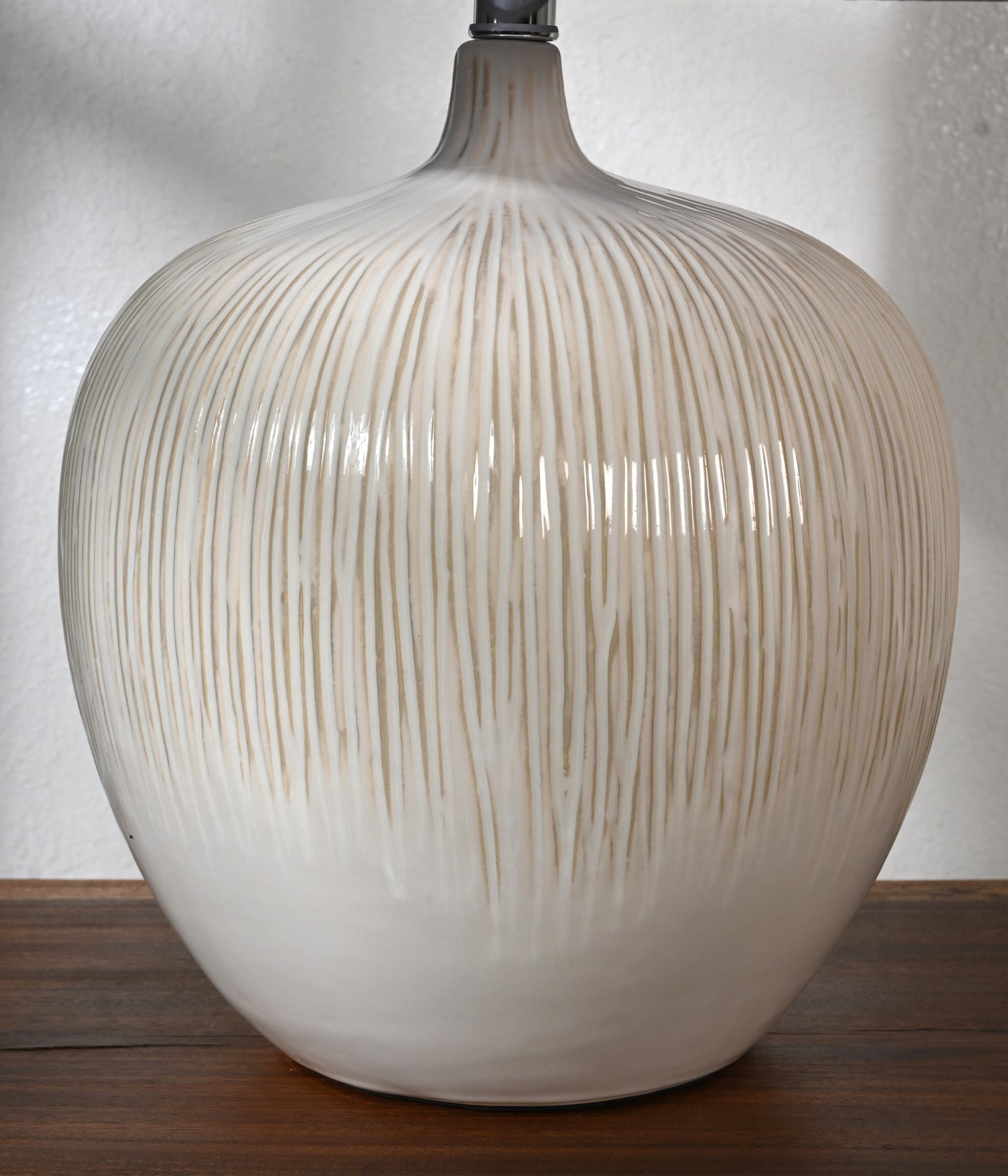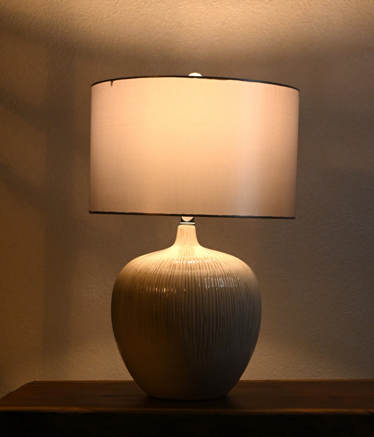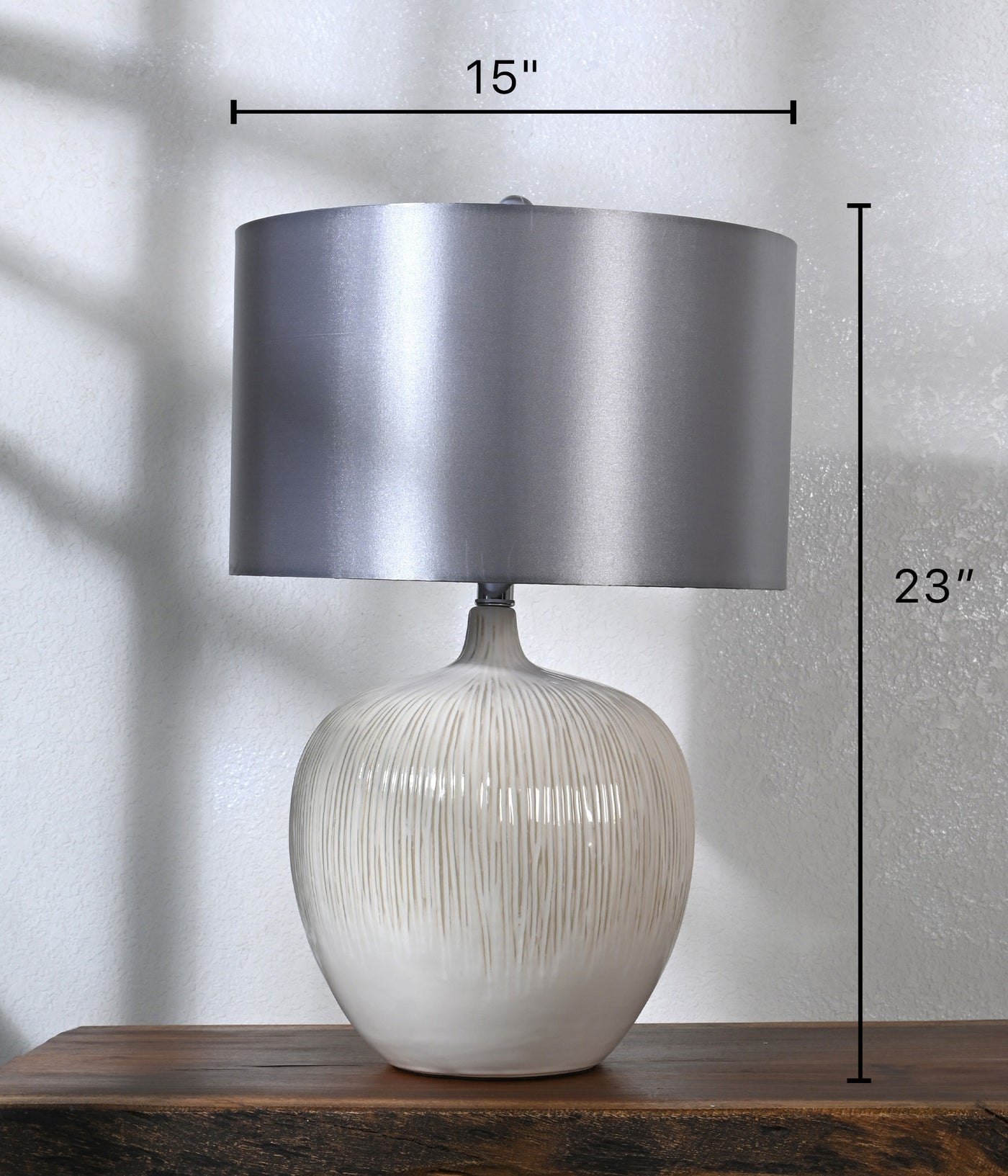 A soft cream ceramic silhouette, crowned with a silver-toned shade, this lamp is more than just lighting, it’s a statement of calm luxury, elevated taste, and quiet refinement. Perfect for spaces that deserve a gentle glow with a touch of silver sheen.