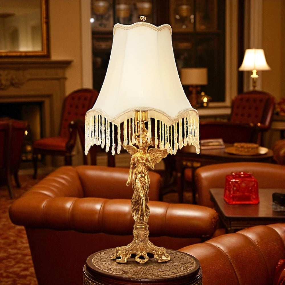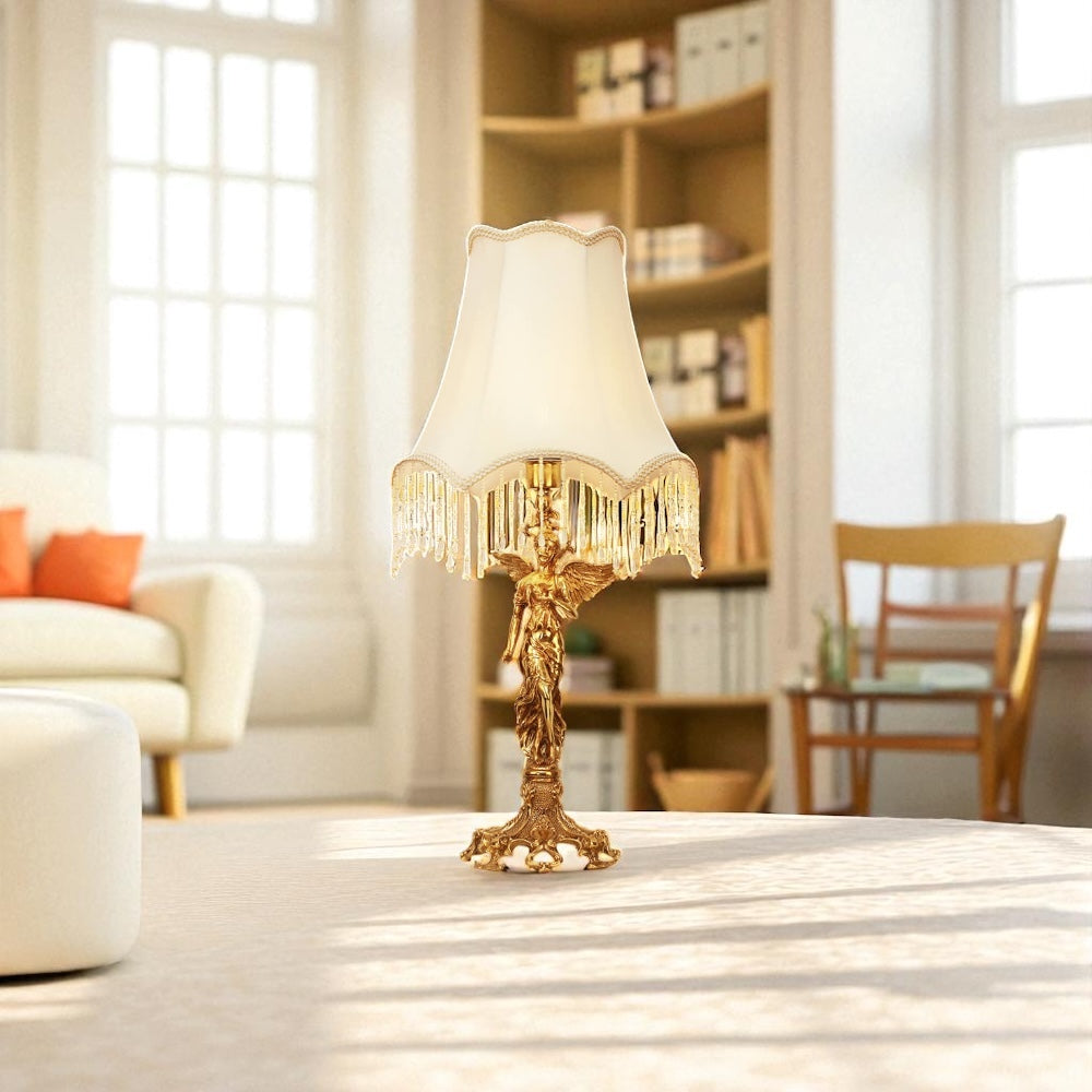 Loevsky Crystal and Brushed Brass Hollywood Regency Angel Table Lamp