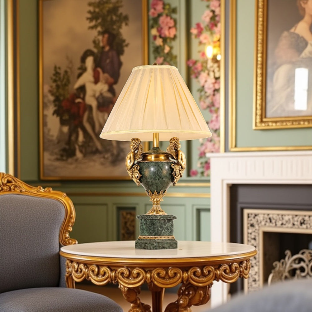 French Louis XVI Style Antique Table Lamp With a "Vert De Mer" Marble Body