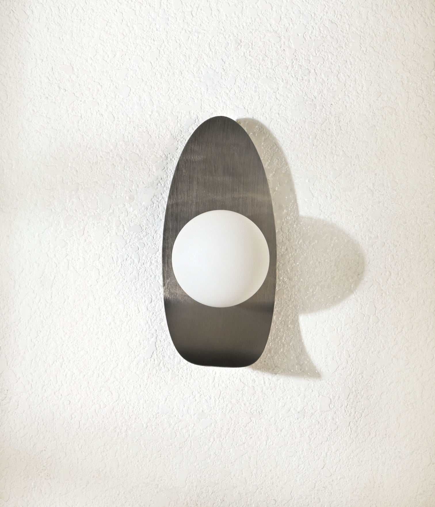 Sleek Wall Light featuring an imported glass globe and a stylish metal finish in graphite grey. This piece adds a contemporary touch to any space, perfect for creating a warm ambiance.