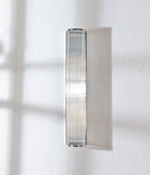 A fusion of steel and glass! The steel-finished wall light with clear glass rods gives your bathroom a polished, stylish upgrade with a bright, clear glow.