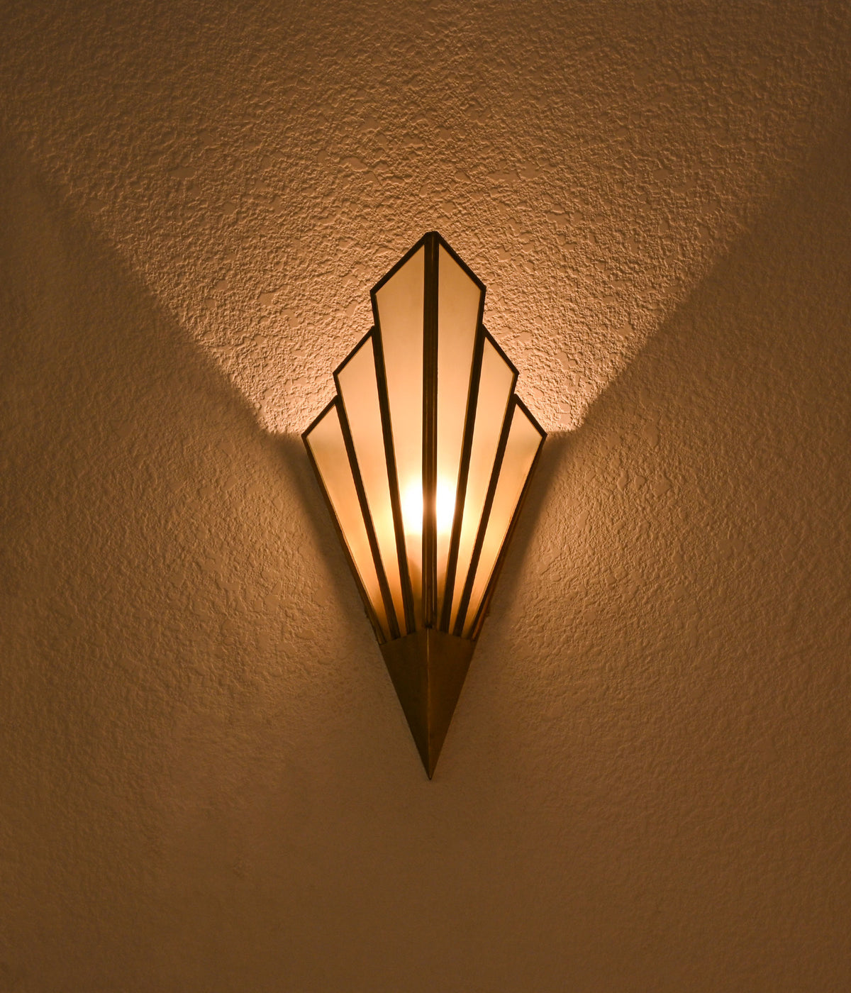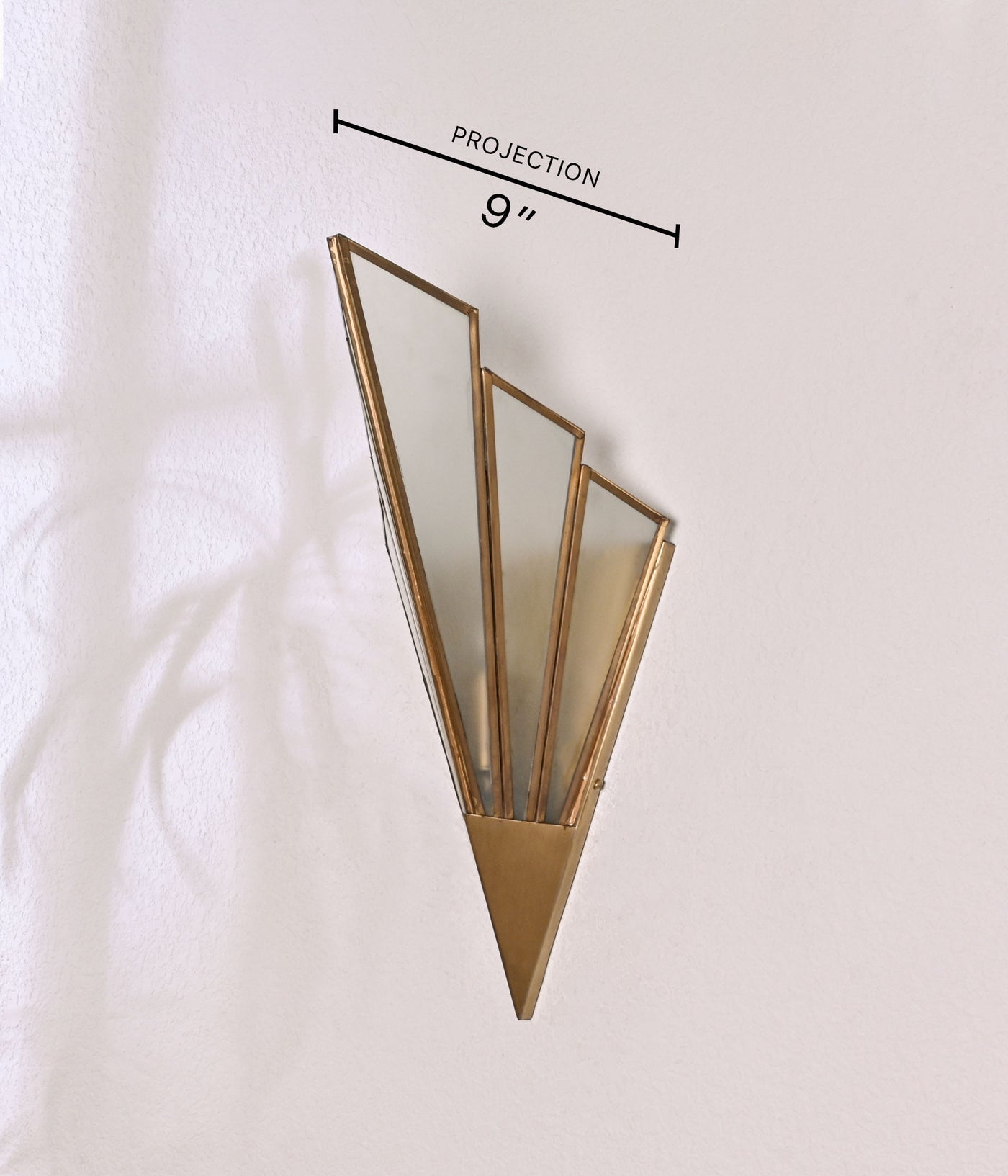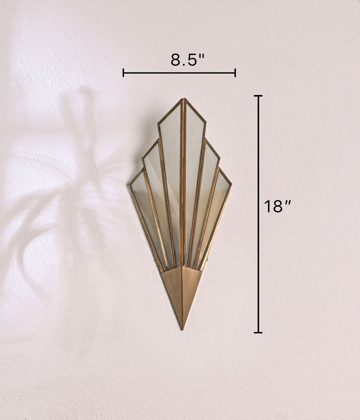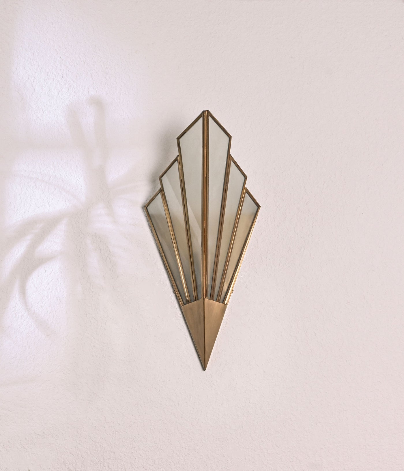 Illuminate your space with elegance using this Art Deco wall light crafted from brass with an antique finish. Featuring frosted glass and designed with 1 X E-14 lamp holder, it exudes timeless charm and sophistication.