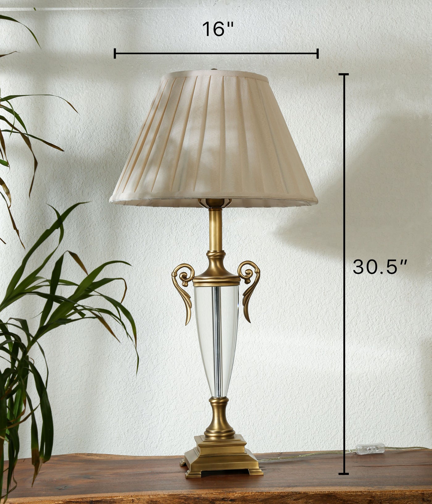 Add timeless charm to your home with this elegant vintage crystal table lamp, featuring a beautifully sculpted clear crystal base, antique brass accents, and a classic pleated fabric shade. Designed to blend seamlessly with traditional, vintage, or transitional décor styles, this lamp emits a warm, ambient glow perfect for bedrooms, living rooms, or entryways. Built with high-quality materials and a sturdy base, it includes an easy-to-use inline switch and supports standard E26 bulbs, including energy-efficient LED options (bulb not included). Whether placed on a bedside table or console, this lamp not only provides functional lighting but also serves as a sophisticated decorative accent—making it an ideal gift for weddings, housewarmings, or special occasions.