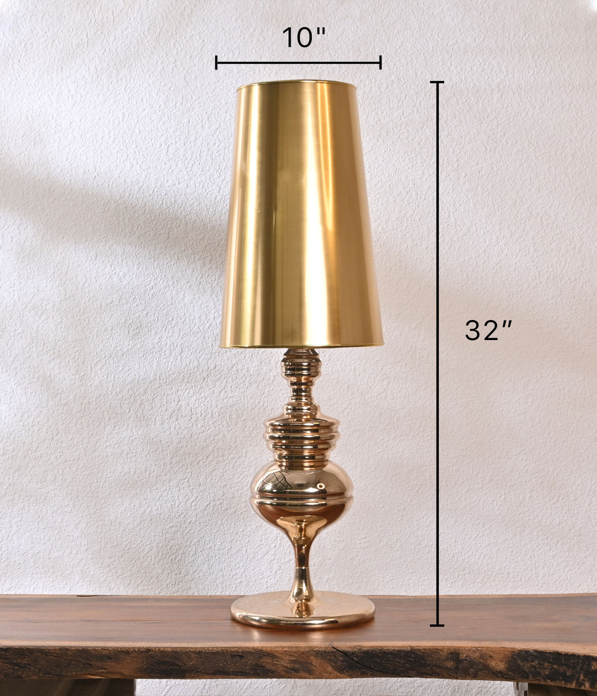 Upgrade your interior décor with this Luxury Gold Metal Table Lamp, a statement piece designed to bring refined elegance and modern sophistication into your space. With a lustrous polished brass base and a sleek metallic gold lampshade, this decorative lamp effortlessly blends art and function.