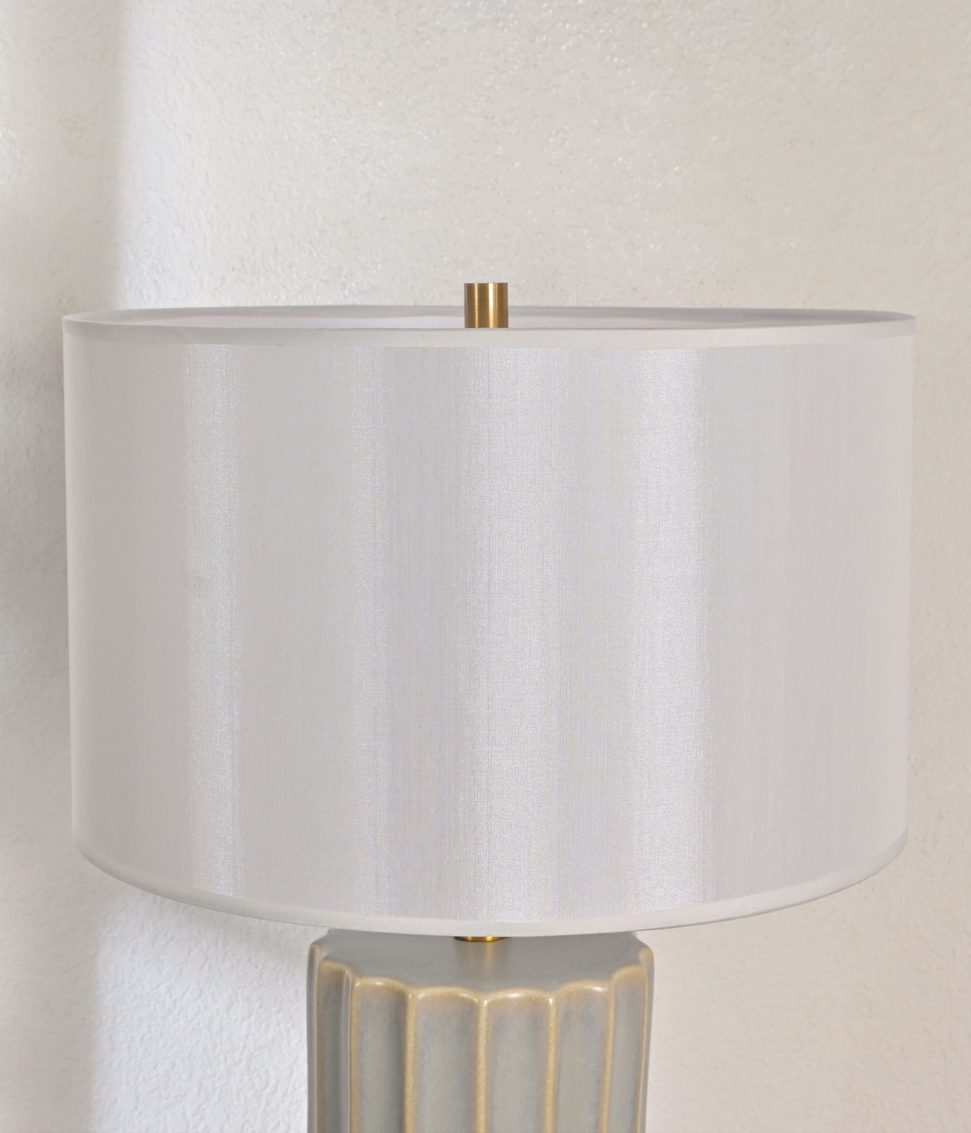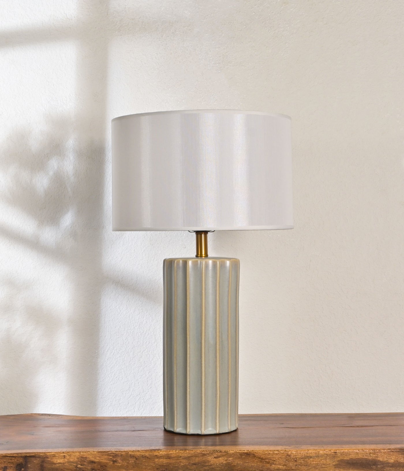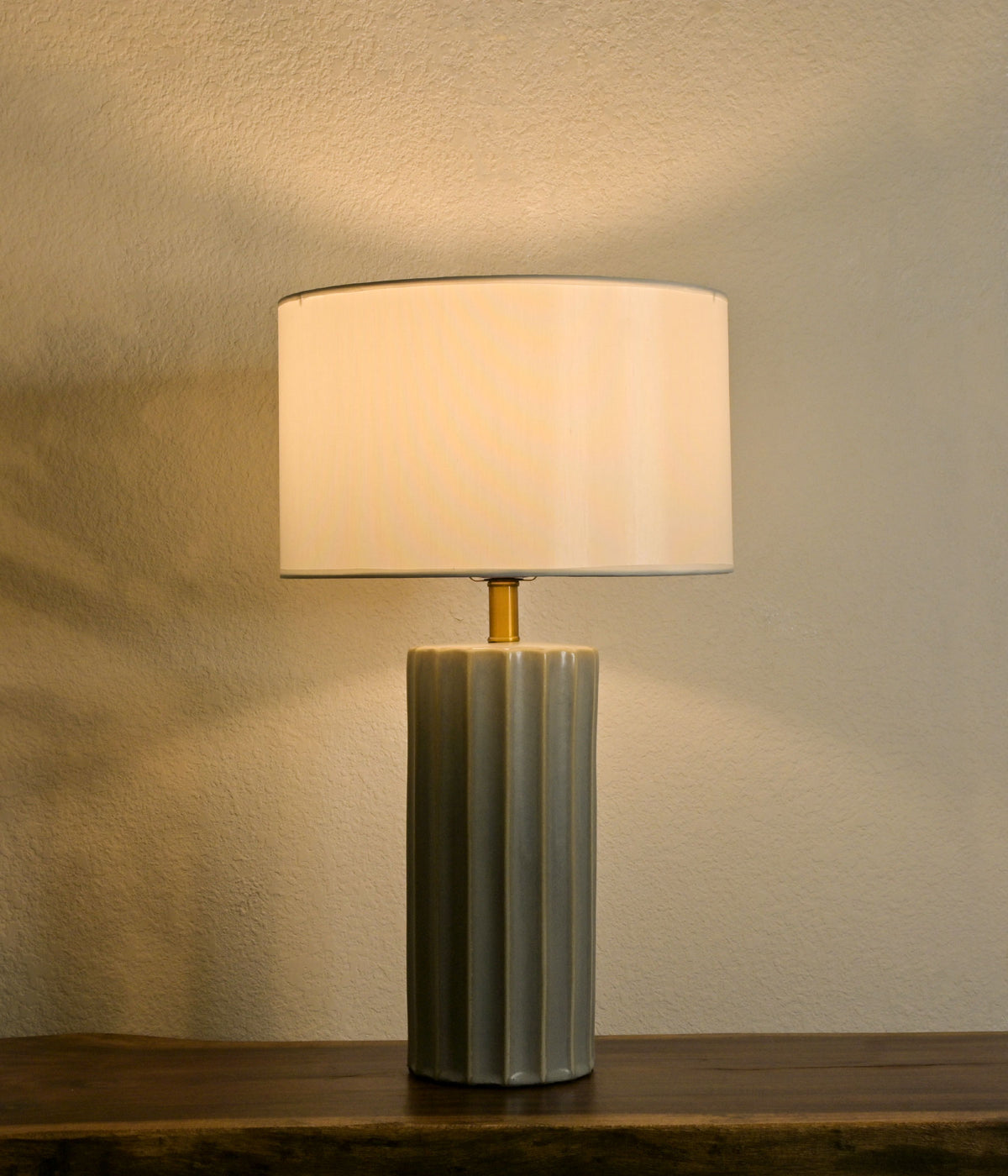 Elevate the ambiance of your room with this modern ceramic table lamp, designed with a vertical fluted base and finished in a soft, neutral tone. Topped with a crisp white drum lampshade, this lamp blends effortlessly with both contemporary and traditional décor styles.
