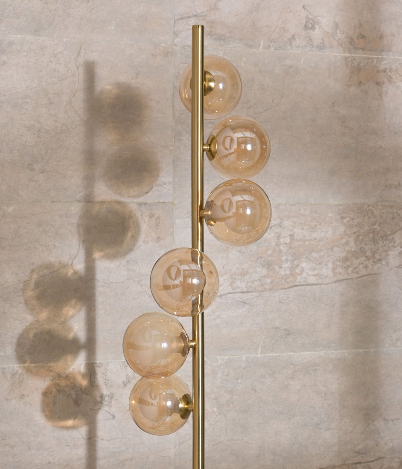 ๐งก Unique Amber Glass Globes: Six handcrafted amber-toned glass spheres softly diffuse light, creating a warm and ambient glow.