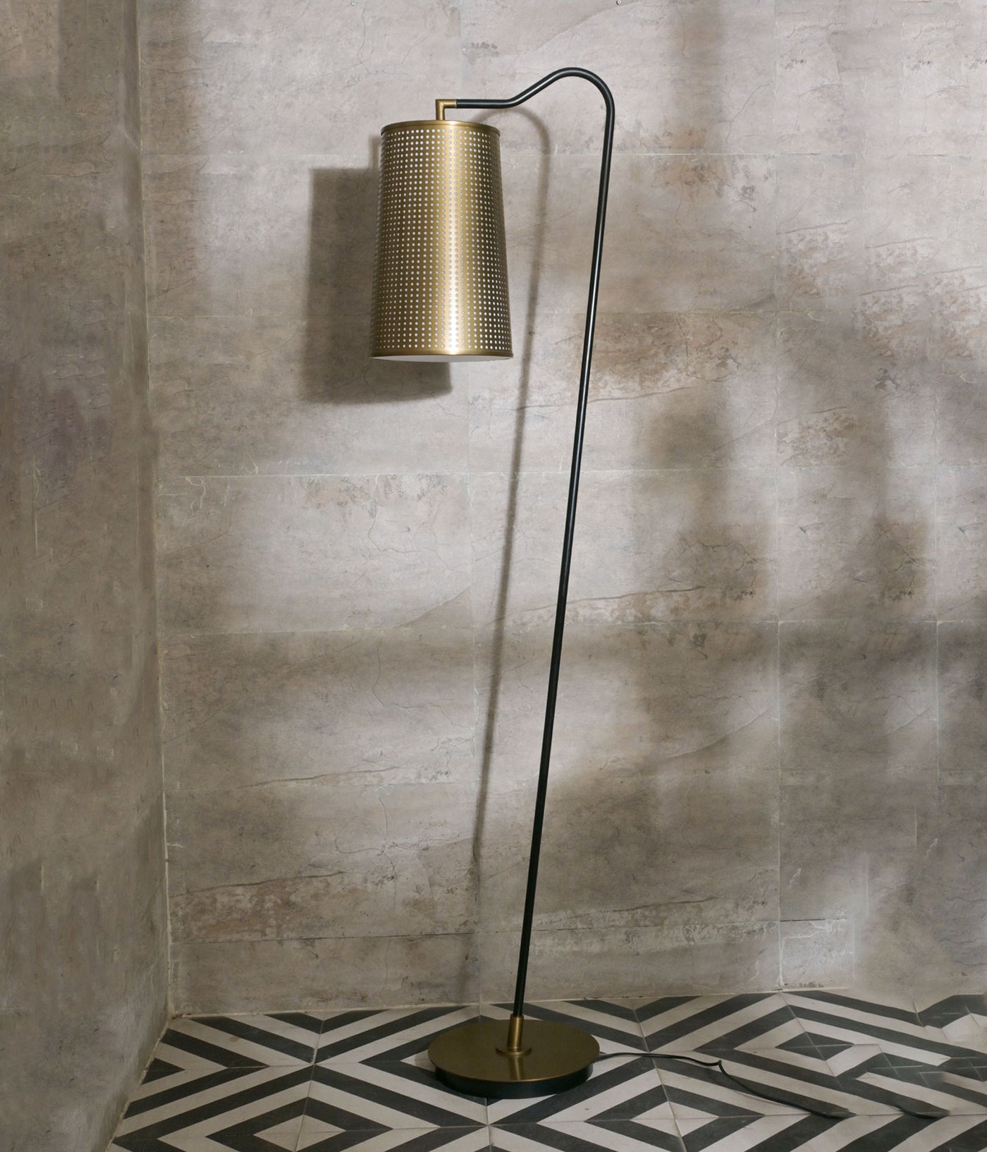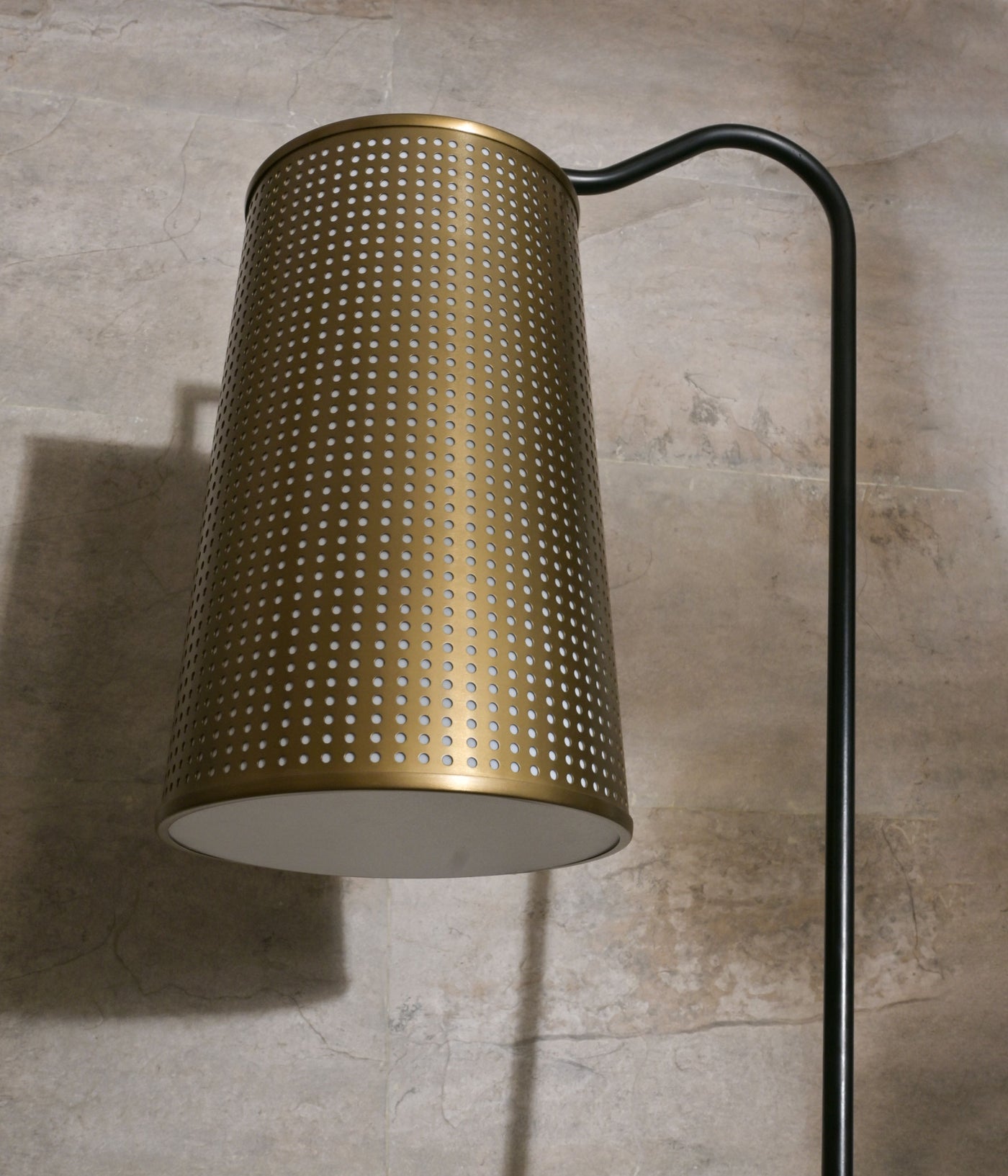 Stylish Industrial Design – Add a touch of modern sophistication to your home with this tall floor lamp featuring a sleek black frame and perforated brass metal shade. Perfect for contemporary, mid-century, or industrial interiors.