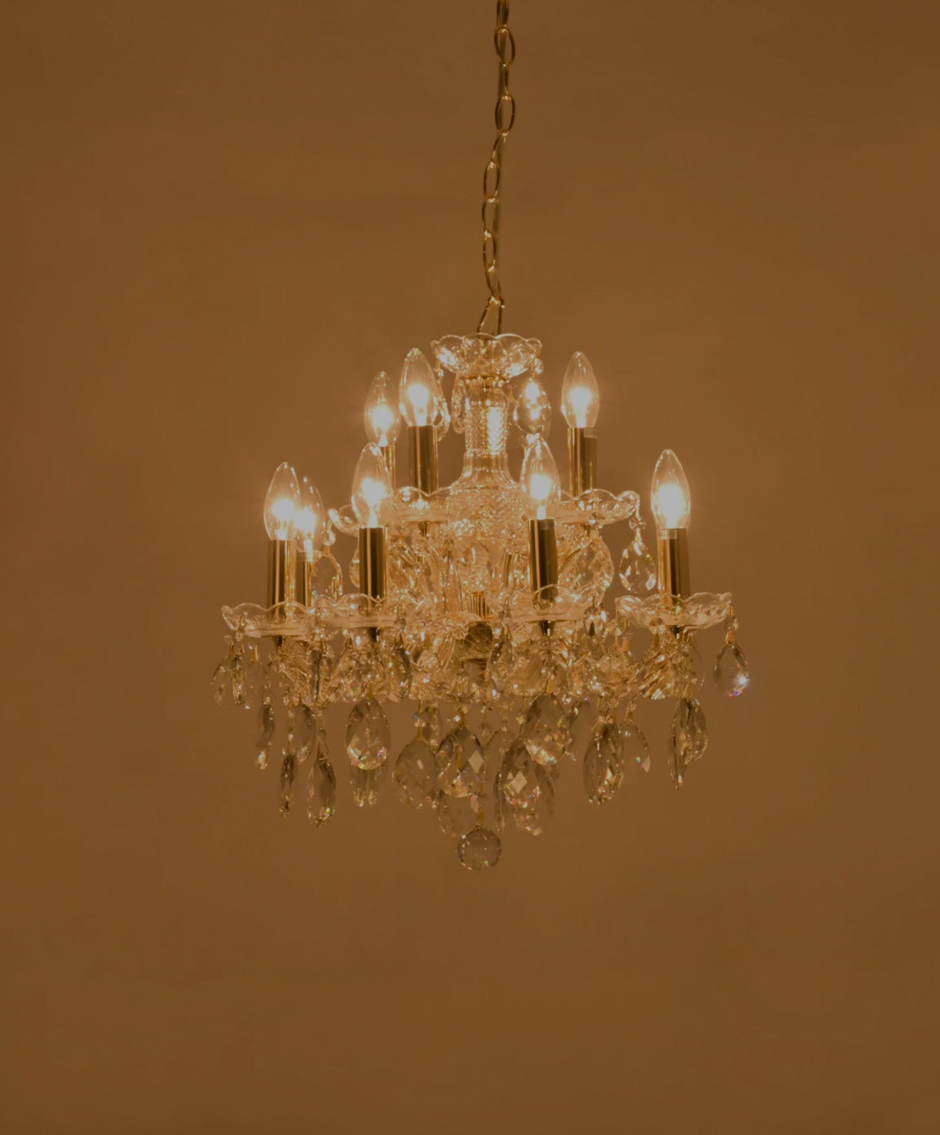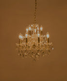 Add grandeur to your home with this crystal chandelier, featuring clear crystals and a gleaming gold-plated frame. The 12 lights (8+4) provide a brilliant glow, perfect for elevating your living space.