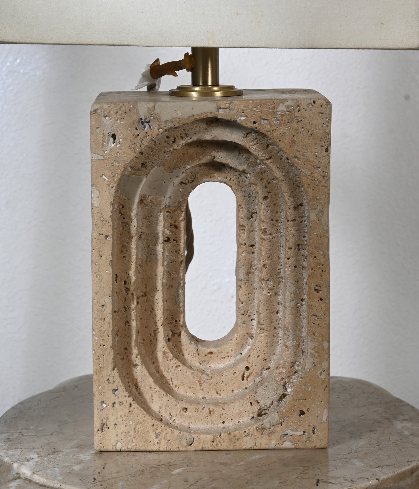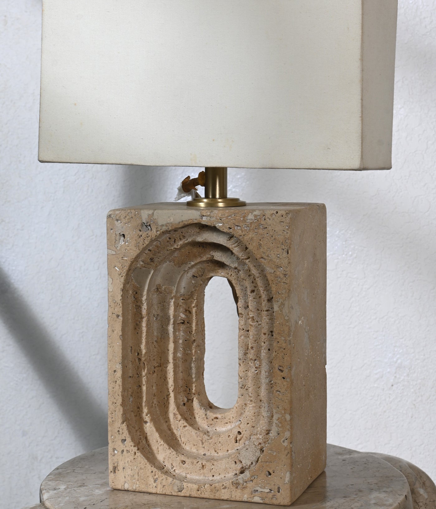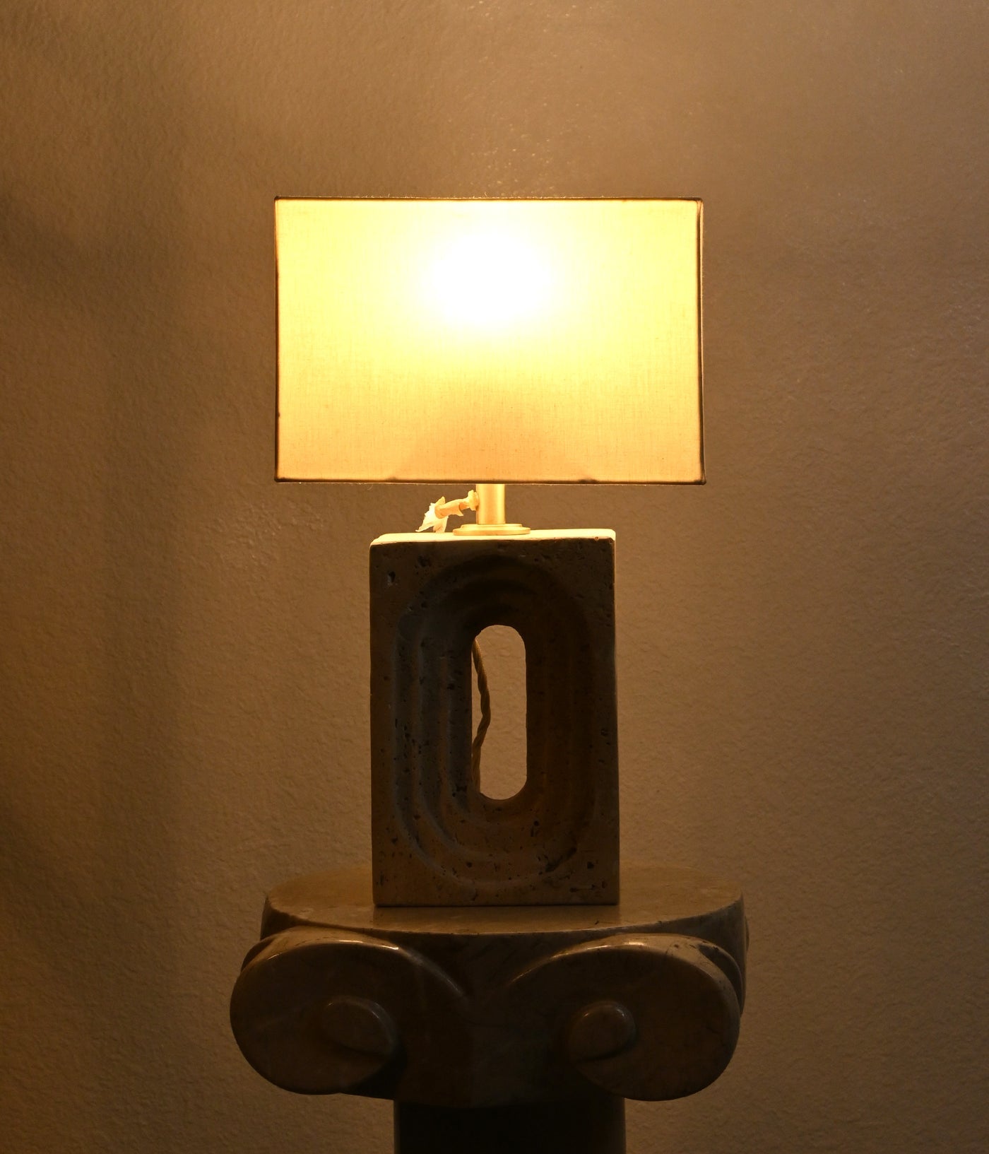 Light, carved from the earth and shaped into serenity. With its unique travertine grain and
