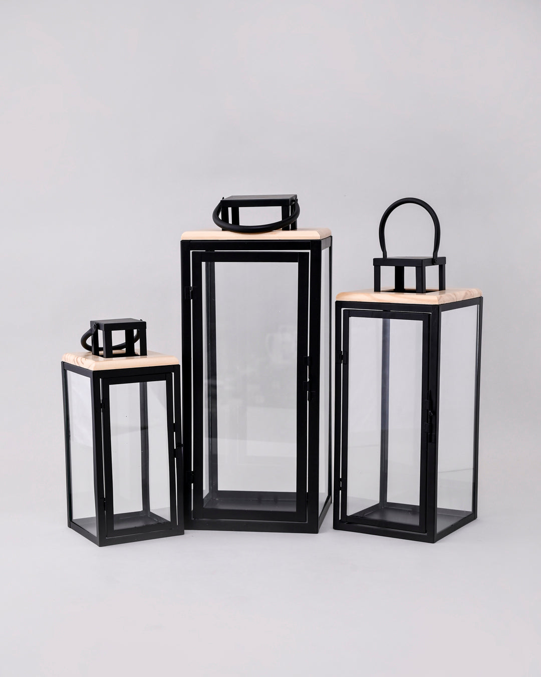 Black Frame Elegance Candle Lantern - 3 Sizes Pack