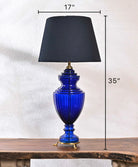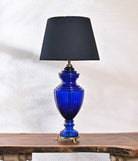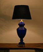 Lead Glass Table Lamp In Royal Blue Colour Along With Navy Blue Quilted Lamp Shade
