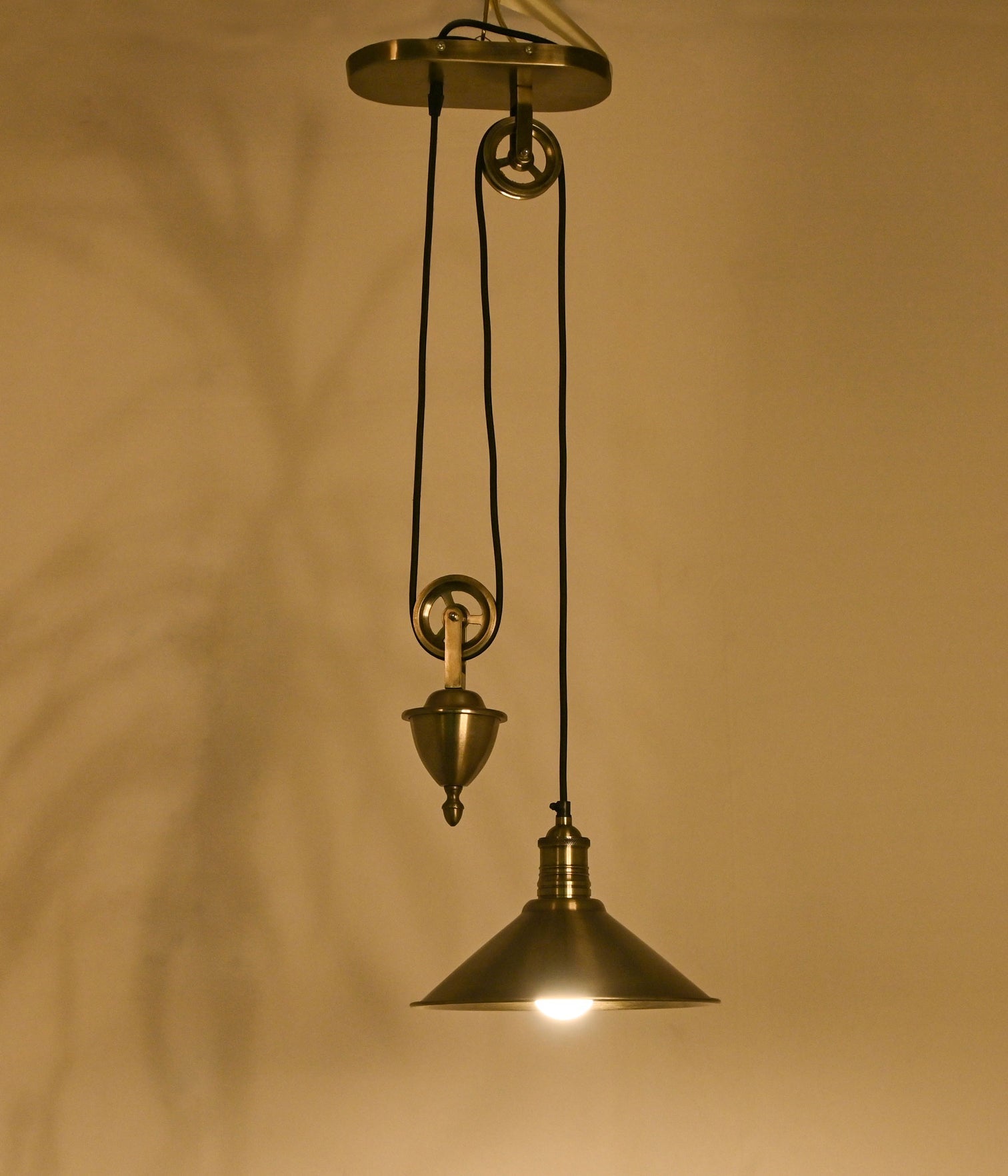 Enhance your interiors with our pendant light featuring an adjustable pulley system in antique silver finish. Its versatile design allows you to set the perfect height, making it an ideal choice for various spaces in your home.