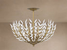 • Our Morrigan Lighting Collection features vintage inspiration in three tiers of white glass leaves that fan across brass arcs—creating movement and subtle texture in an elevated, sculptural light.