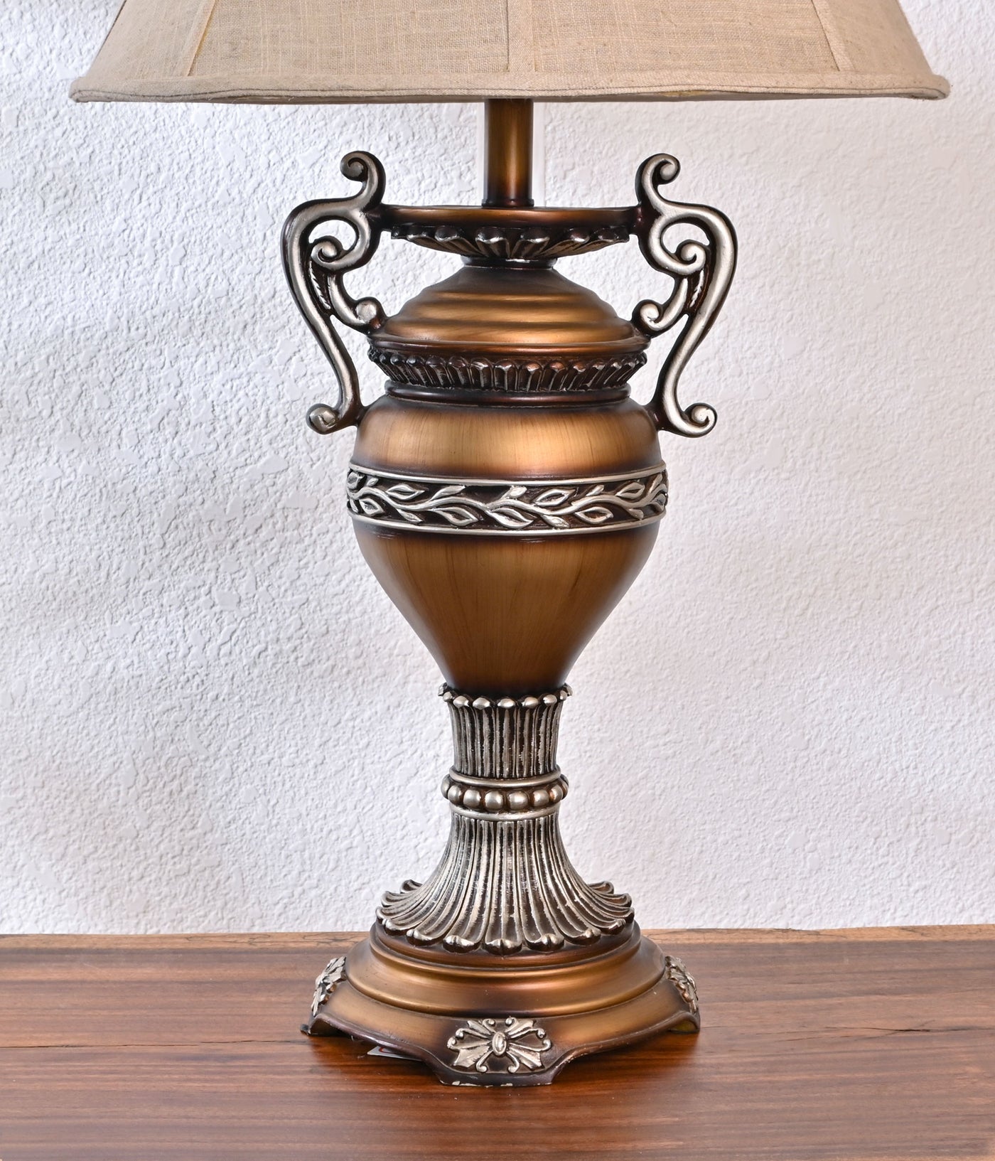 Add a touch of elegance to your space with our Craving Table Lamp, crafted from resin cast with a rich Matt Gold and Antique Silver finish. The lamp features a beige-coloured shade, providing a warm and cozy glow, Perfect for any room.