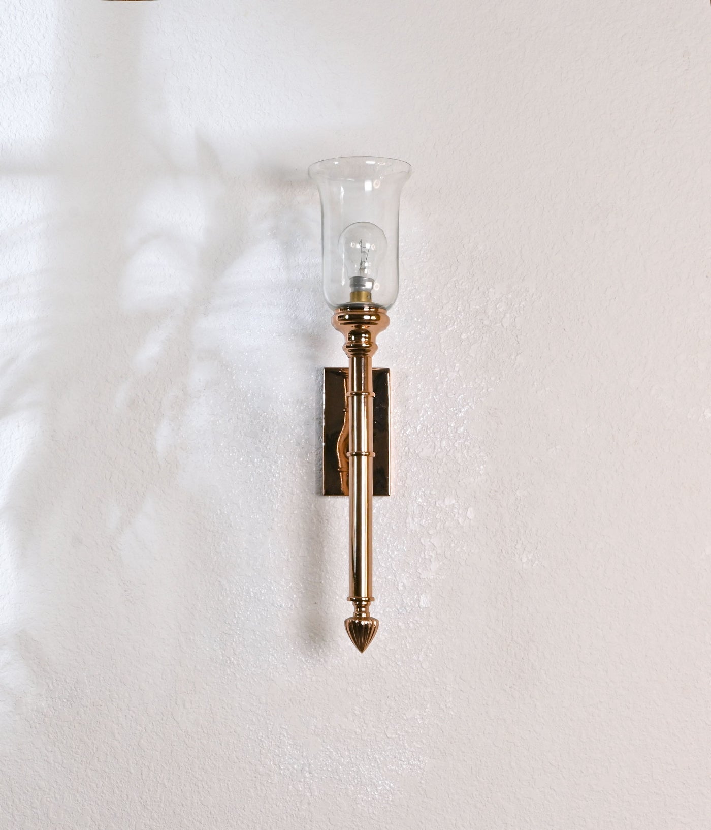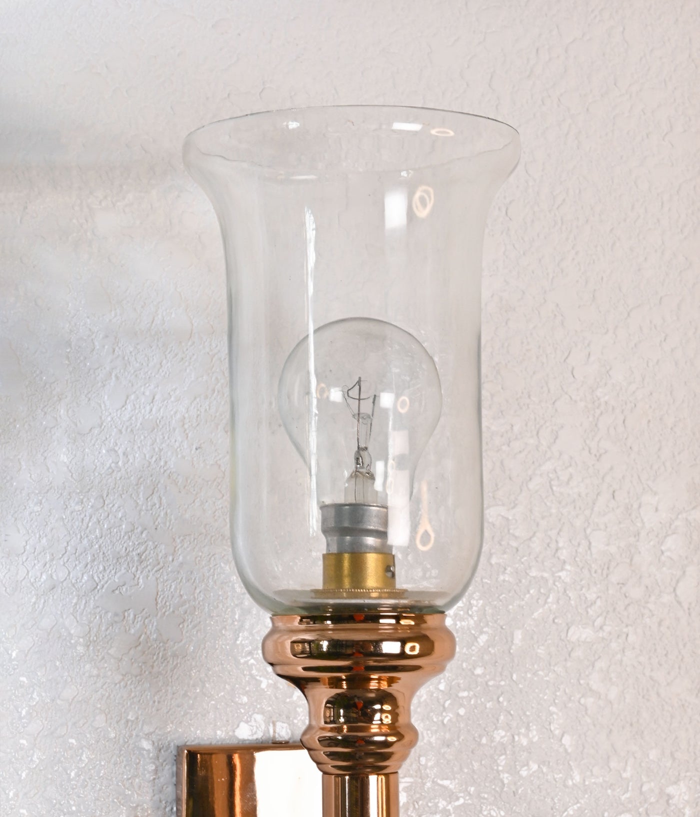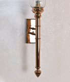 Illuminate your space with a contemporary wall light, featuring a rose gold finish and a clear glass shade. This stylish fixture blends modern design with elegant accents for a chic ambiance.